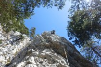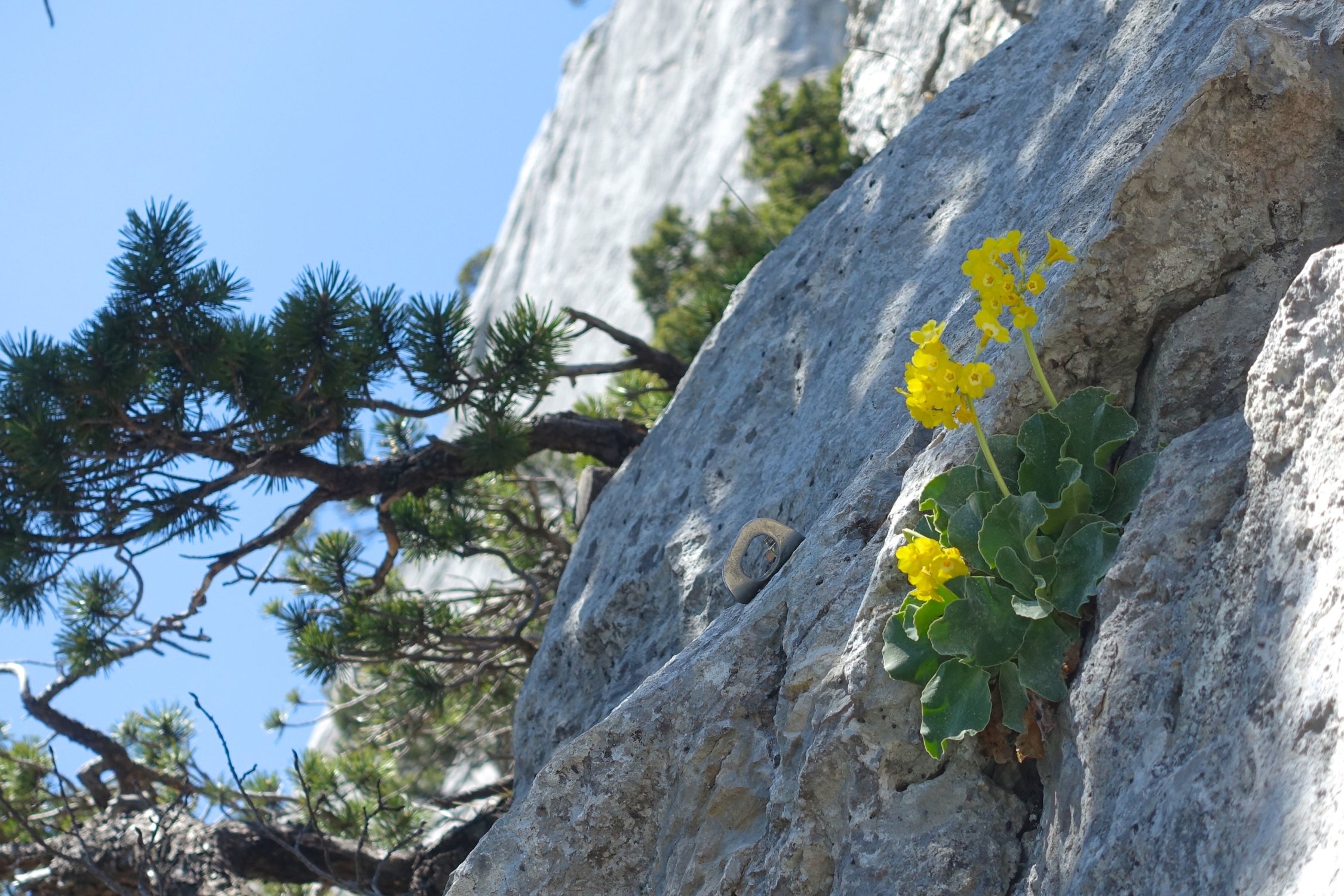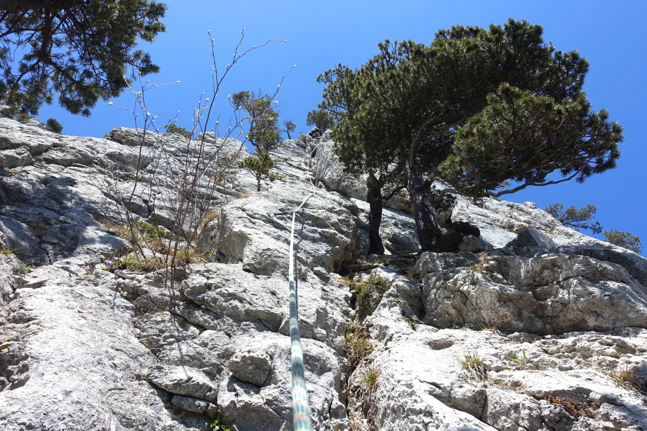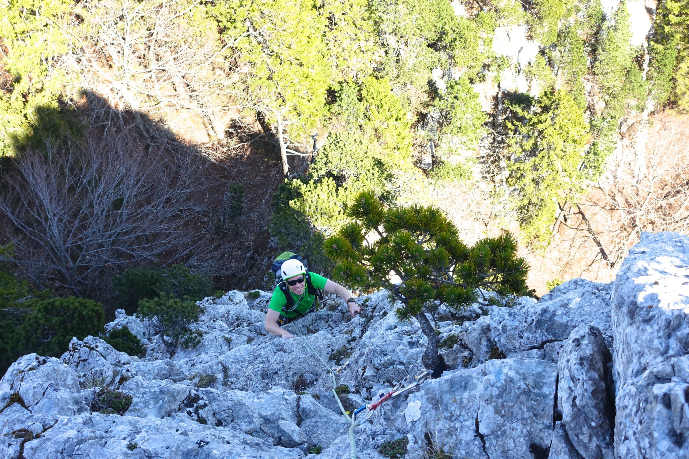 Die Südwände sind auch zum Abseilen eingerichtet. 50-Meter Seil genügt.