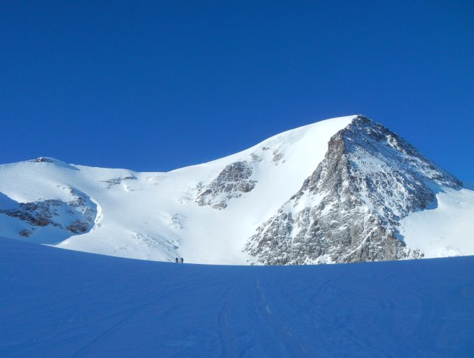 Es hat viel Schnee, die Spalten sind gut gedeckt, diese Tour kann man wohl noch längere Zeit machen.