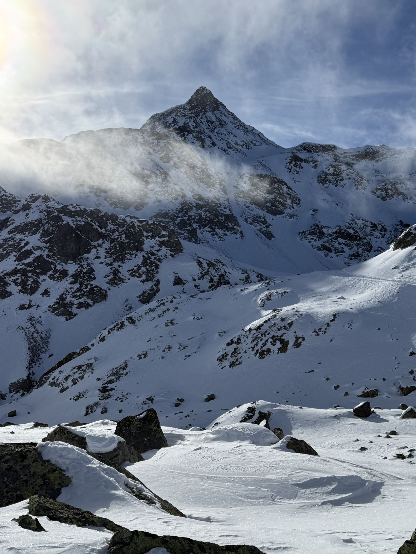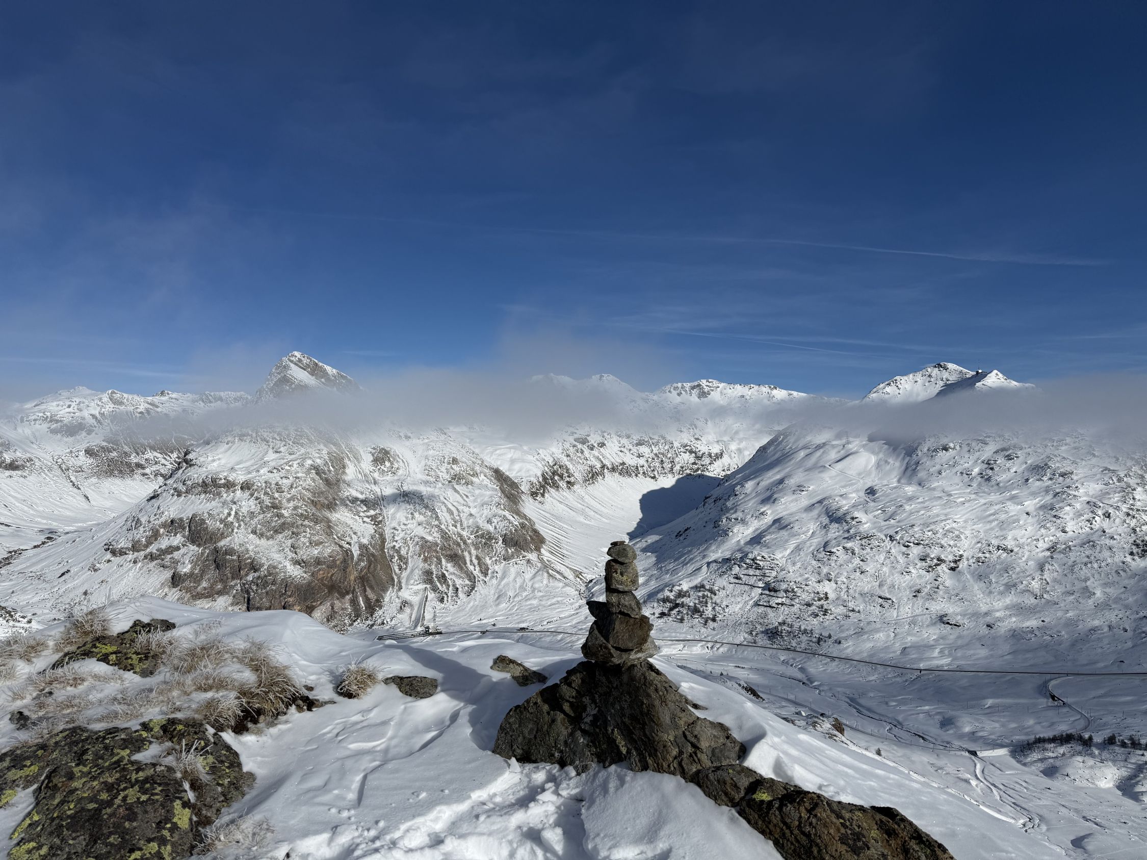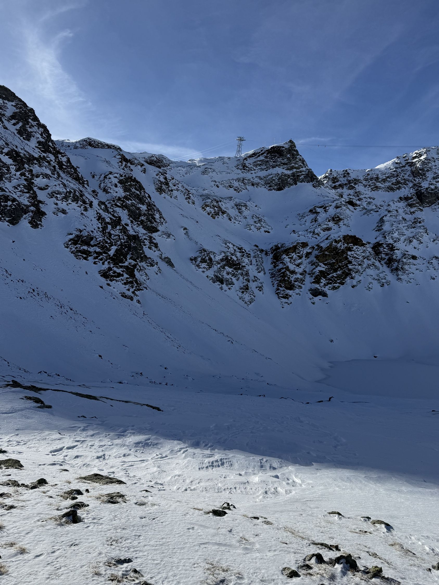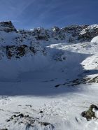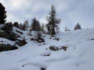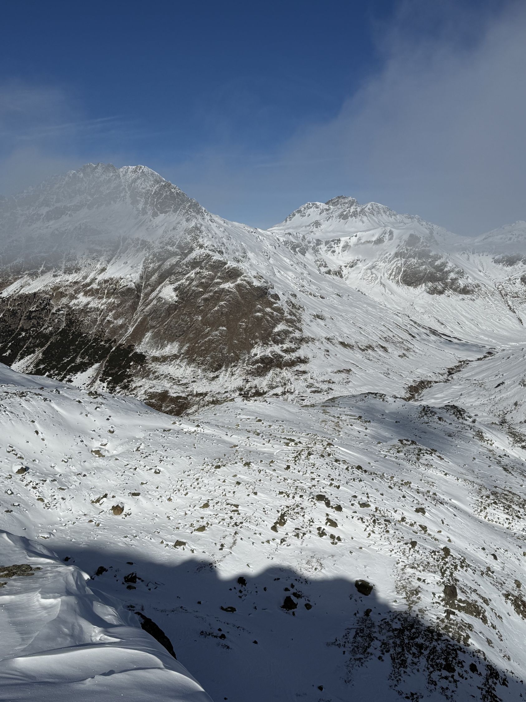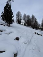 Rassige Tour in schönem Gelände auf den Sattel unterhalb Sass Queder oberhalb Lej. WS+, ÖV Tour. Start Bernina Diavolezza RhB 8.30, windstill, 0 Grad, Hochnebel. Bin alles in Laufrichtung links abseits der Skipiste hoch auf der nicht präparierten Piste „Ravulaunas „ hoch, viel Schnee, teilweise sehr steil, hatte Harscheisen montiert. Ganze Tour gespurt, unten relativ viel Pulverschnee, oben alles pickelhart. Leider erst ab Höhe 2500 m Sonne, der Hochnebel war heute ziemlich hartnäckig. Auf dem Gipfel aber Sonne und schöne Aussicht. Abfahrt auf der toll präparierten Skipiste.