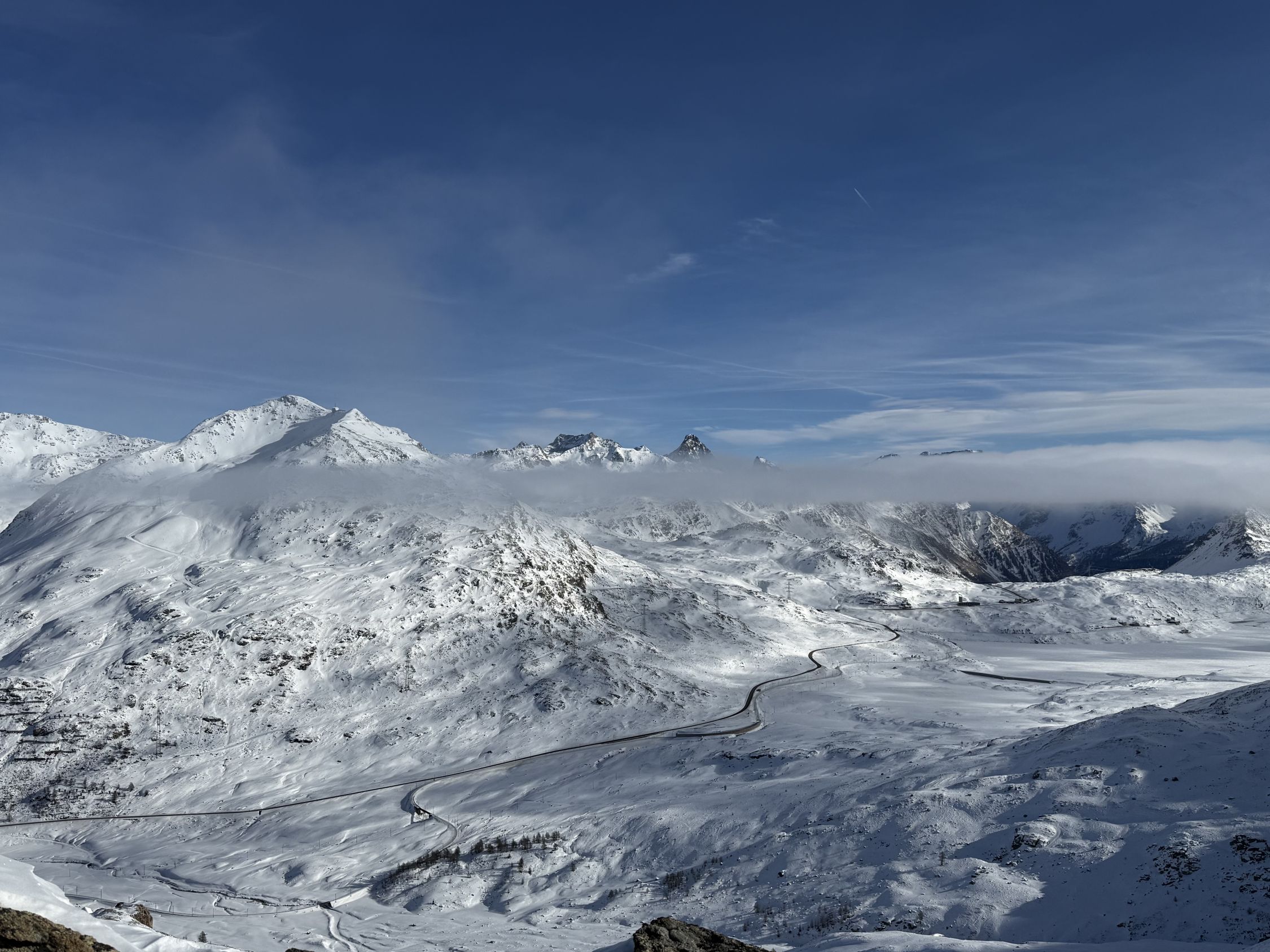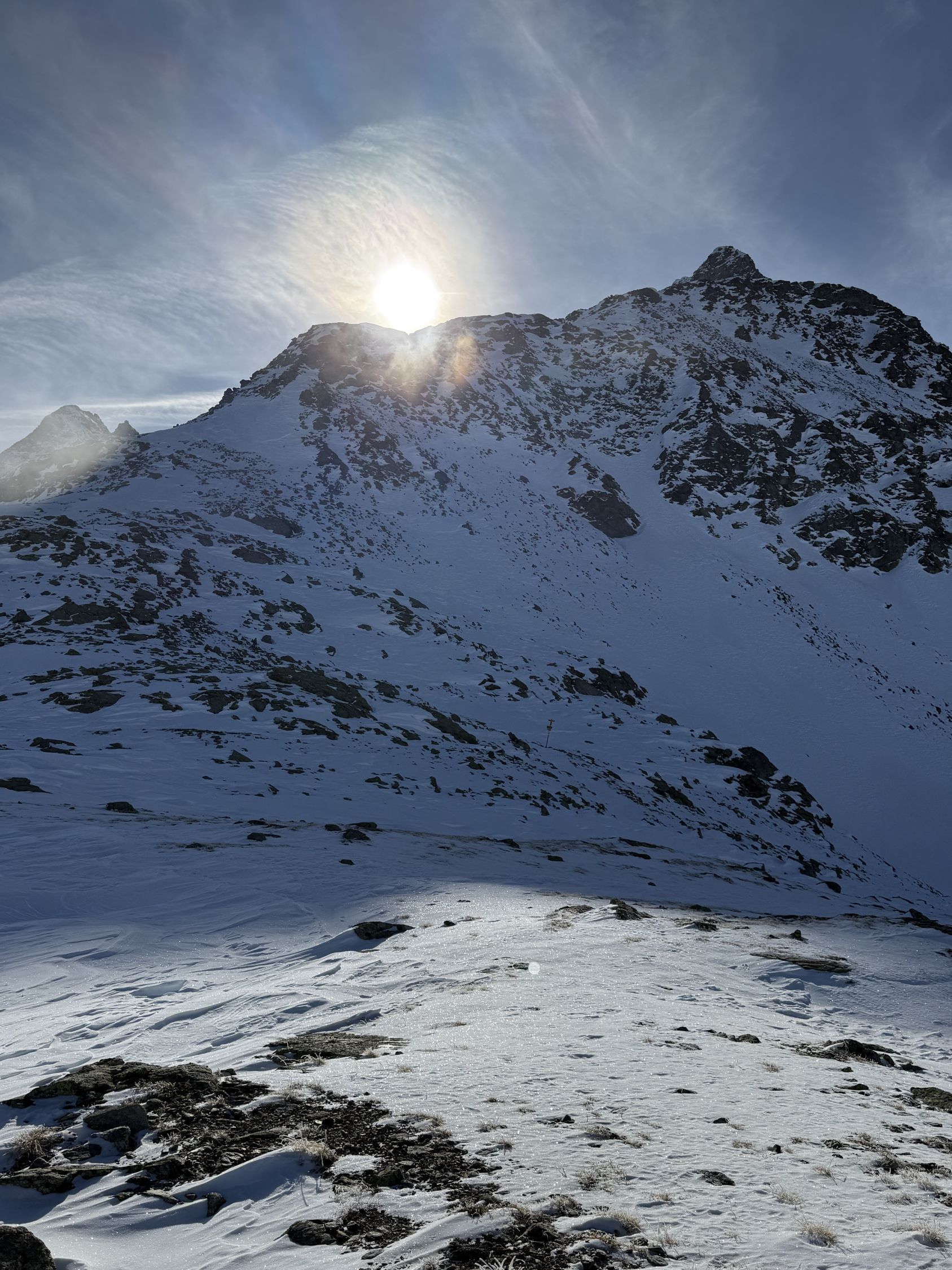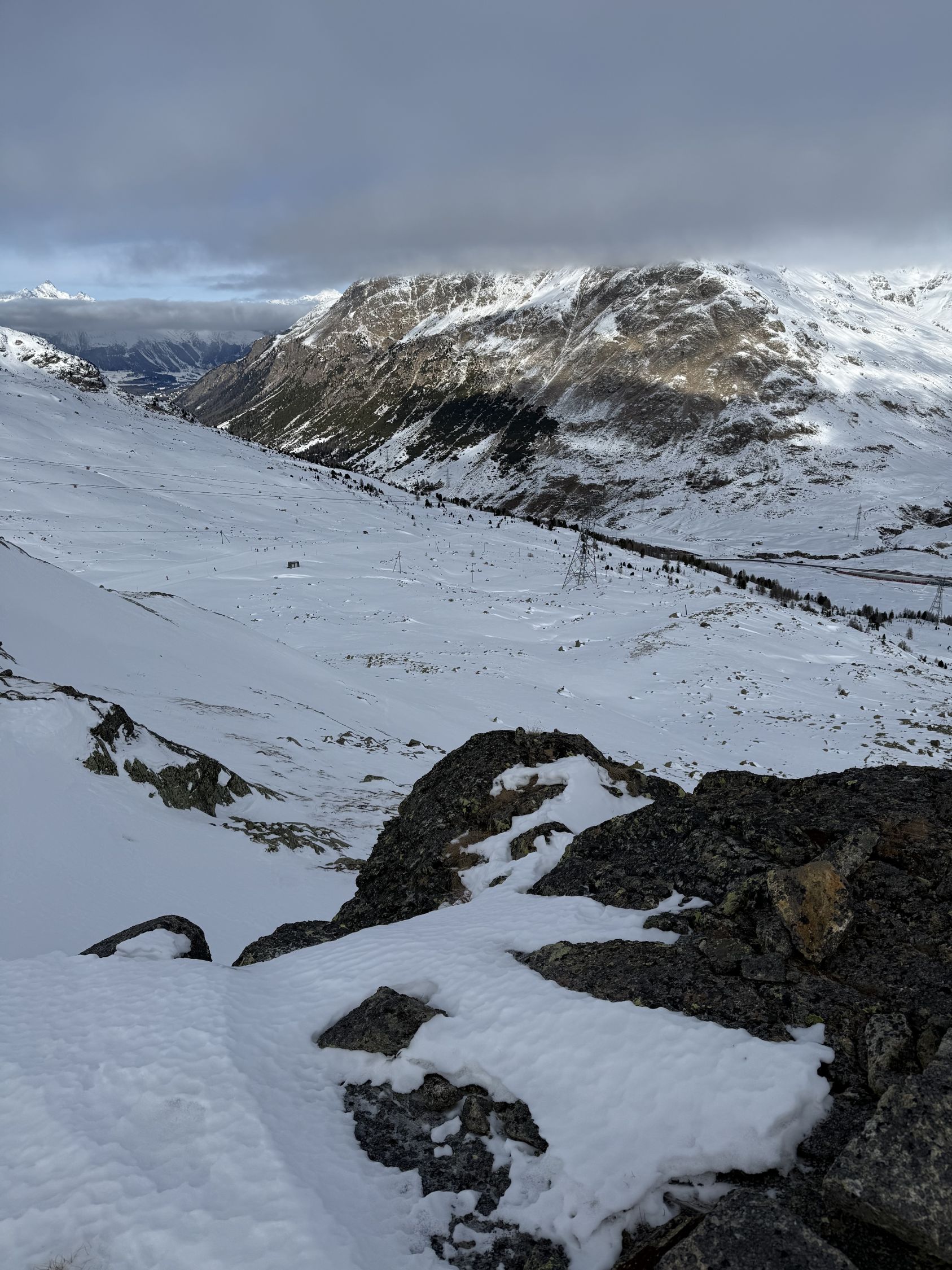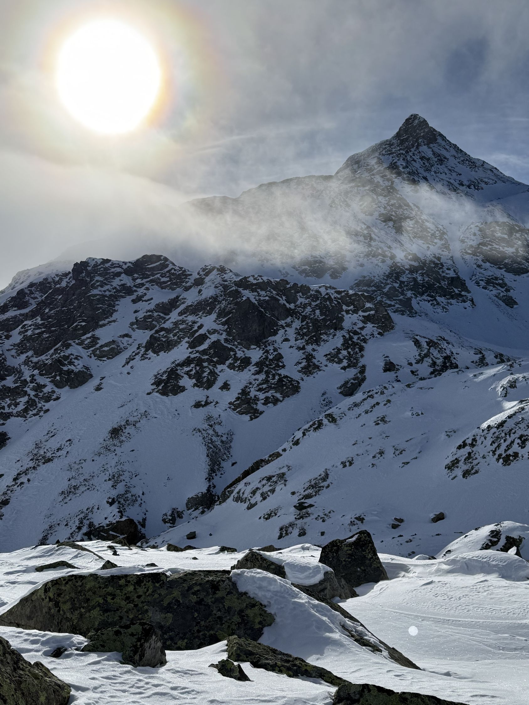 Rassige Tour in schönem Gelände auf den Sattel unterhalb Sass Queder oberhalb Lej. WS+, ÖV Tour. Start Bernina Diavolezza RhB 8.30, windstill, 0 Grad, Hochnebel. Bin alles in Laufrichtung links abseits der Skipiste hoch auf der nicht präparierten Piste „Ravulaunas „ hoch, viel Schnee, teilweise sehr steil, hatte Harscheisen montiert. Ganze Tour gespurt, unten relativ viel Pulverschnee, oben alles pickelhart. Leider erst ab Höhe 2500 m Sonne, der Hochnebel war heute ziemlich hartnäckig. Auf dem Gipfel aber Sonne und schöne Aussicht. Abfahrt auf der toll präparierten Skipiste.