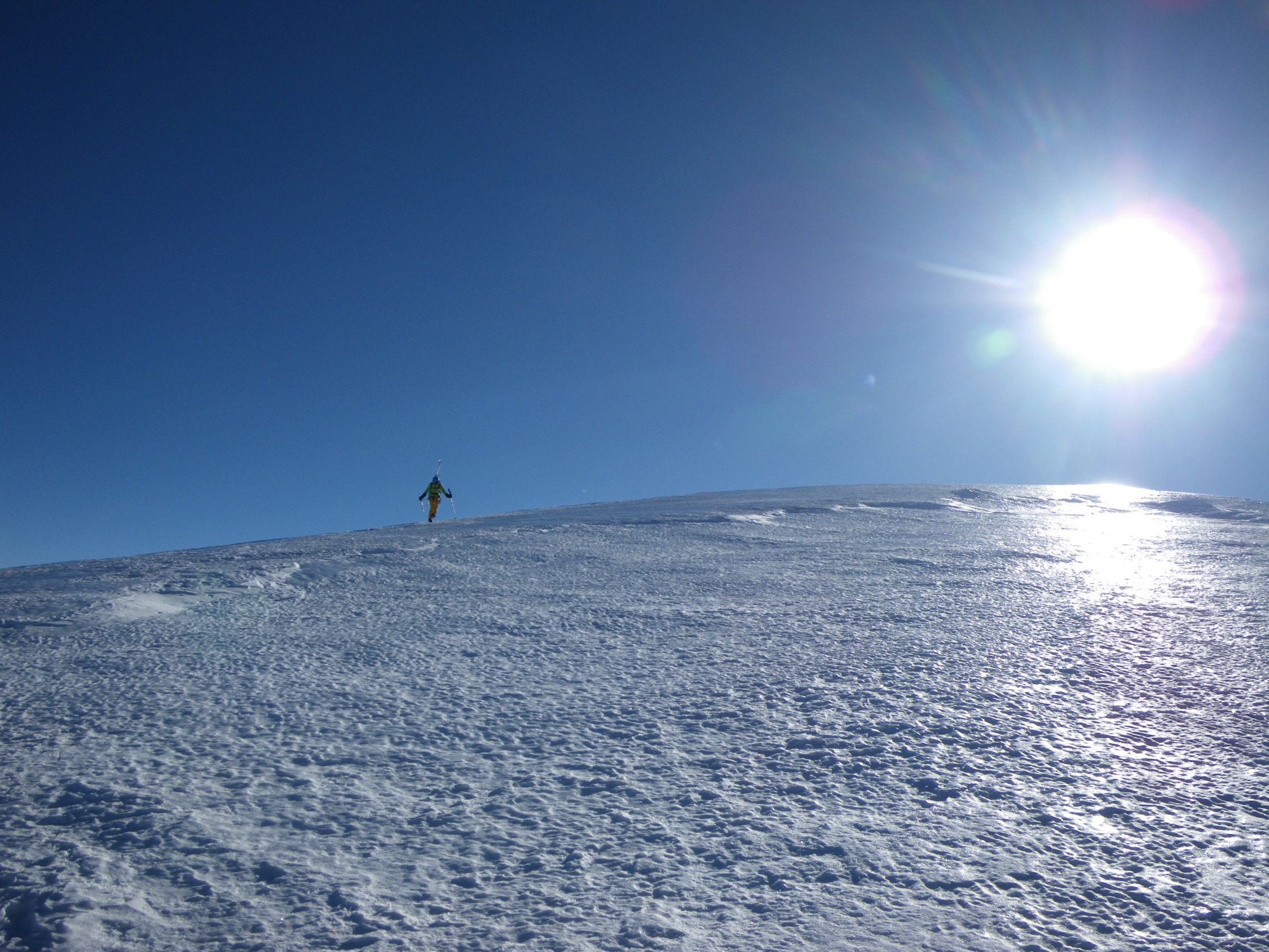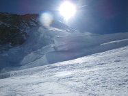 Diese ca. 80-100HM Flanke haben es in sich, siehe Foto. Viele große eisige Flächen, kaum