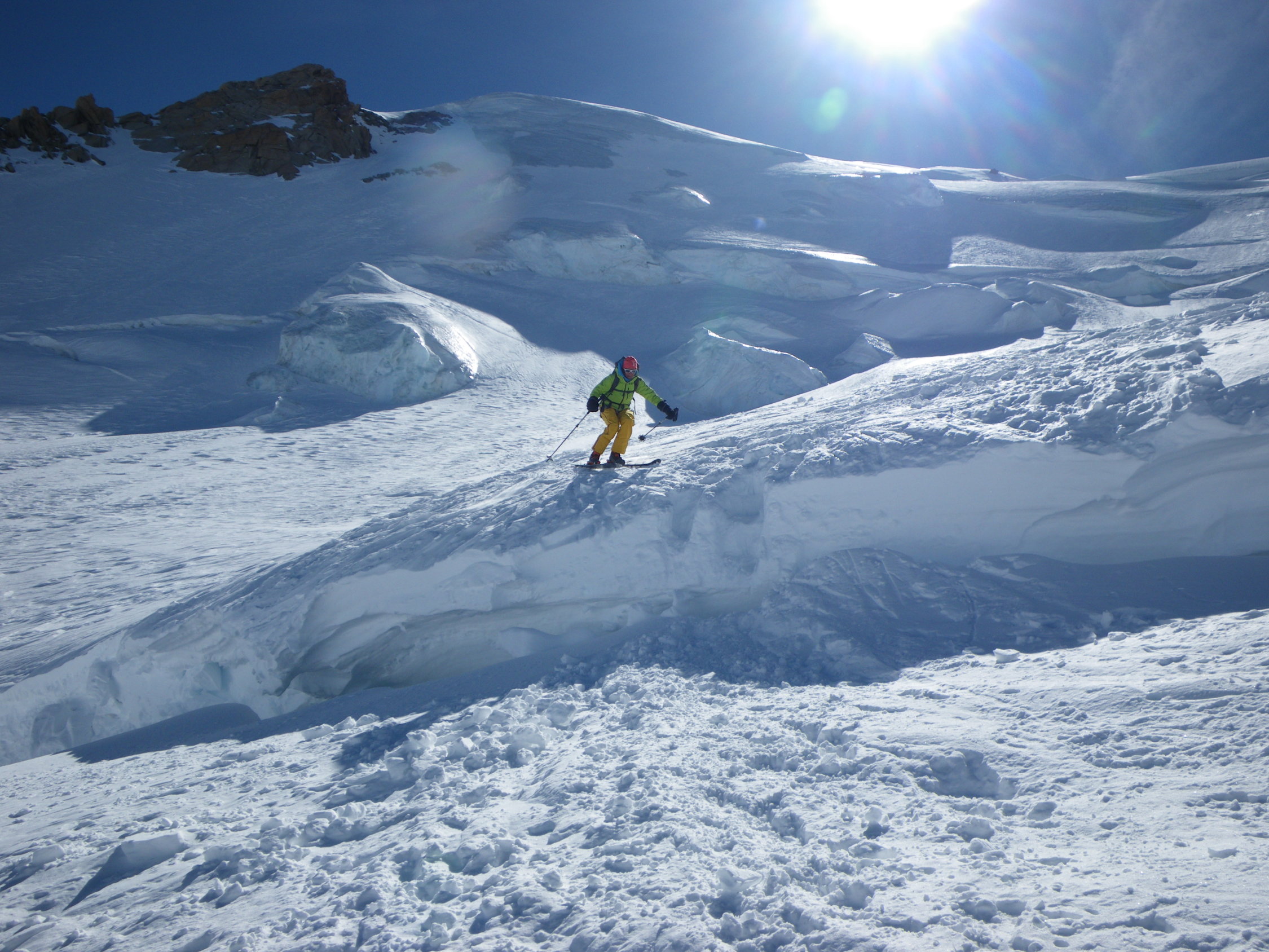 Abfahrt via Mt. Tacul sehr anspruchsvoll da teilweise sehr Glatt, stürzen verboten.