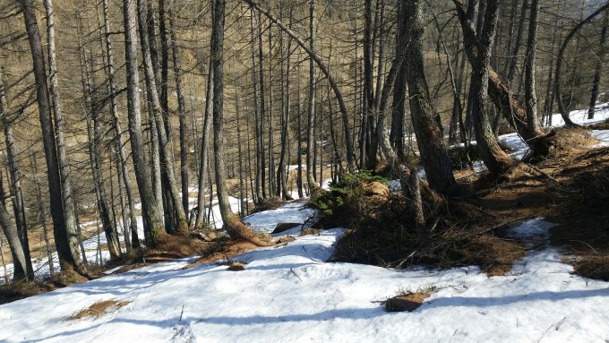 Nach der Brücke in All'Acqua angefellt, etwas Schneemangel bis Val d'Olgia. Die Skis müssen einige Male getragen werden. Danach noch genügend Schnee vorhaden bis zum Gipfel.