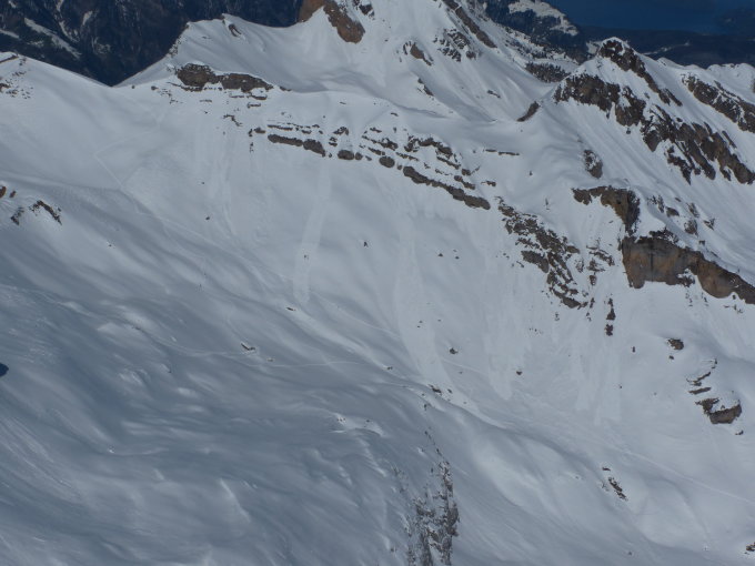 Nassschneerutsche, in Expostionen West und auch Südost.