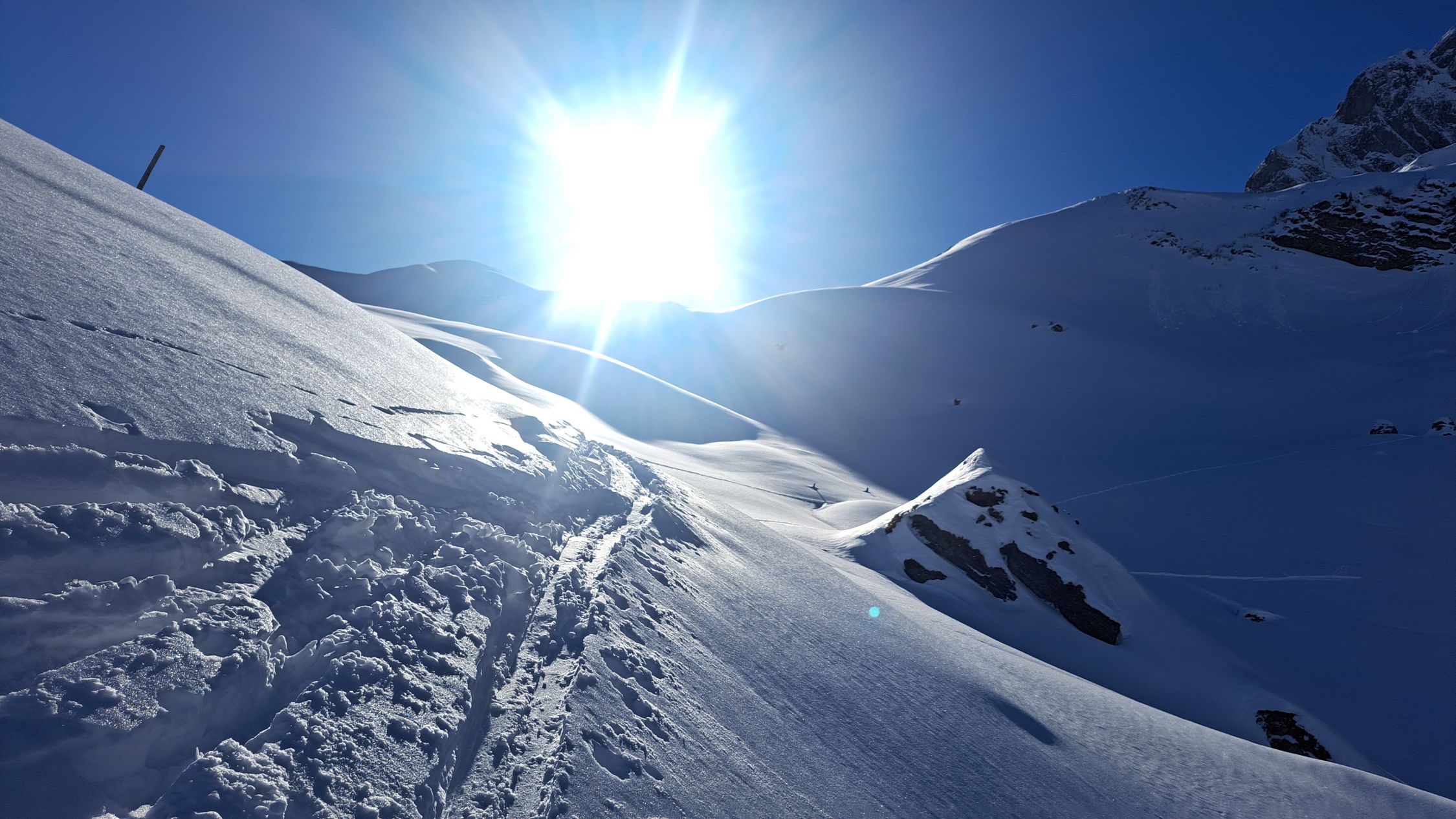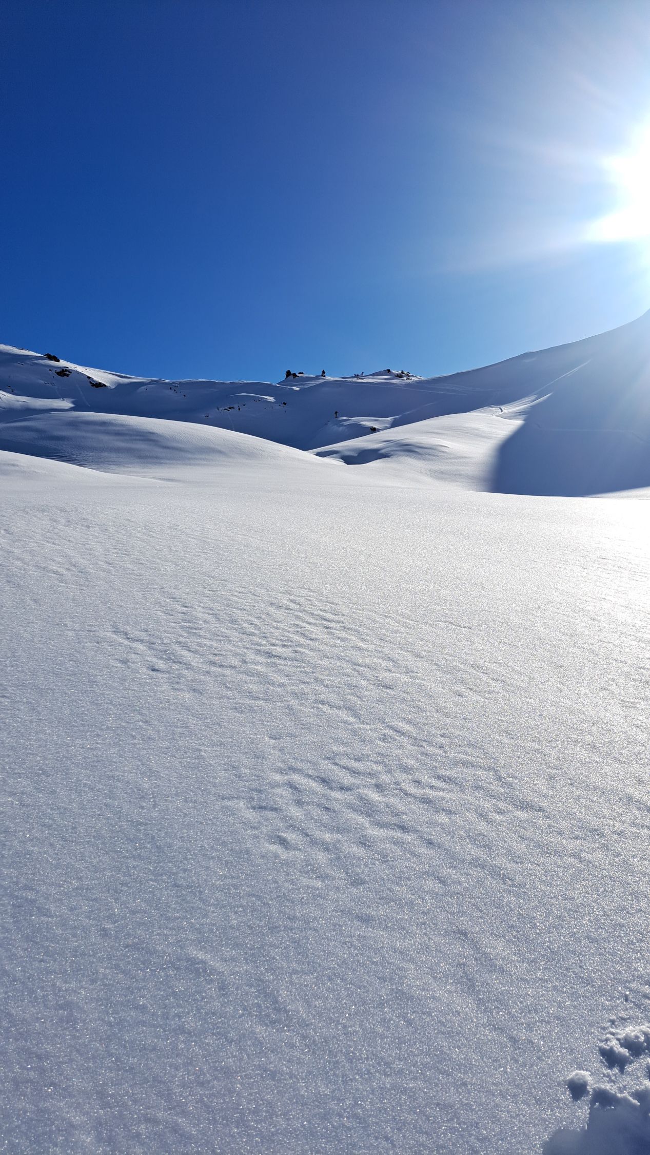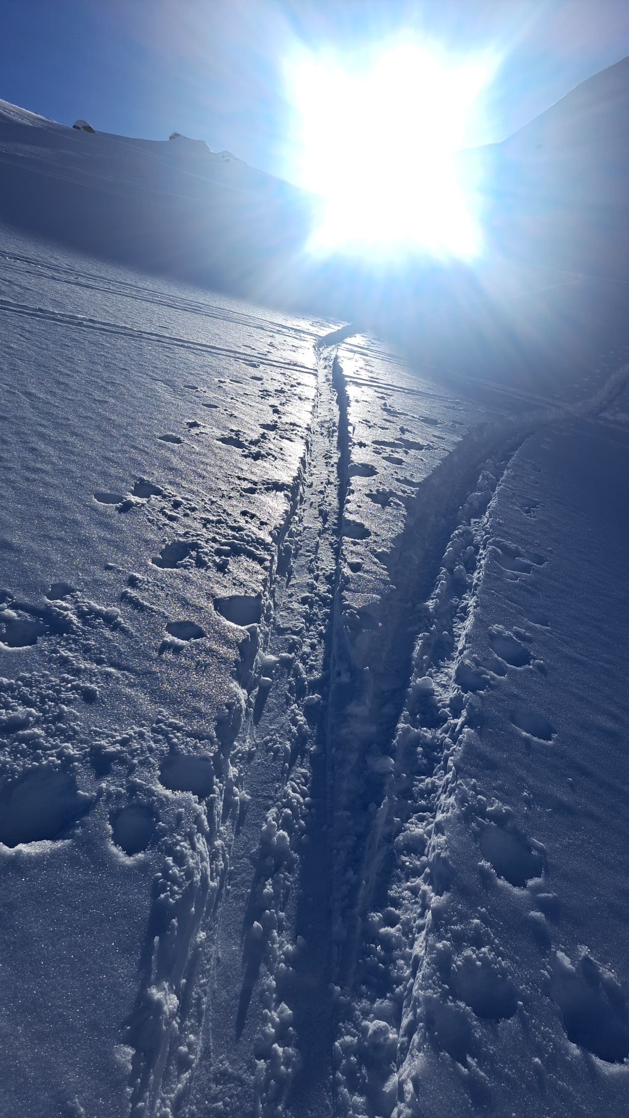 Im Aufstieg alles wunderbar gute Spur schöne Landschaft. Aber bereits im Aufstieg war klar, dass die Abfahrt grausam wird. Am Besten noch vom Gipfel Richtung Robmen, da dort die Sonne den Bruchharsch weggeschmolzen hat. Der Rest richtig krasser Bruchharsch unten dann zuwenig Schnee und viele Sharks. Kaum mehr fahrbar