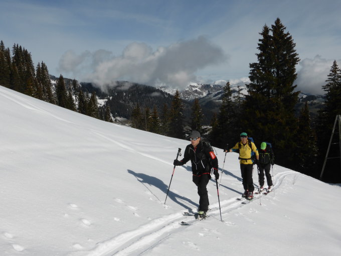 Es wird sicher ein paar Meter Tragstrecke geben(von Lioson d'en Bas bis zum Waldrand ca.300m Strecke), aber grundsätzlich ist die Tour sicher noch mindestens eine Woche lohnend. Das Gebiet ist immer noch sehr gut eingeschneit.