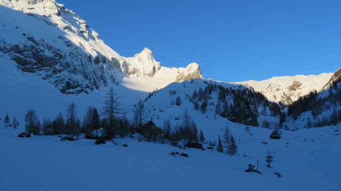 Die Ski konnten heute ab Parkplatz Iffigenalp angeschnallt werden (Strasse bis da Schneefrei)