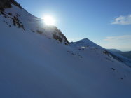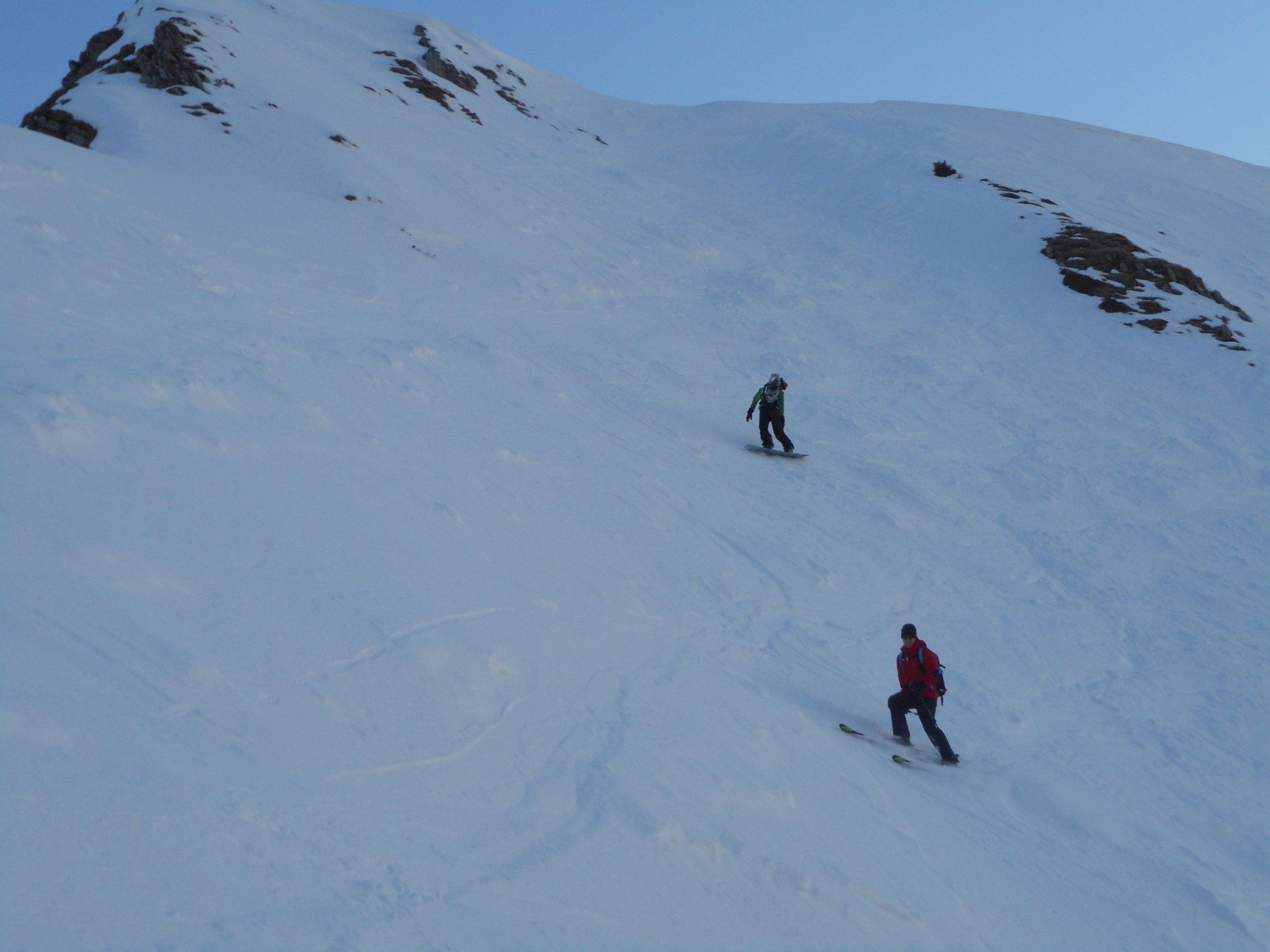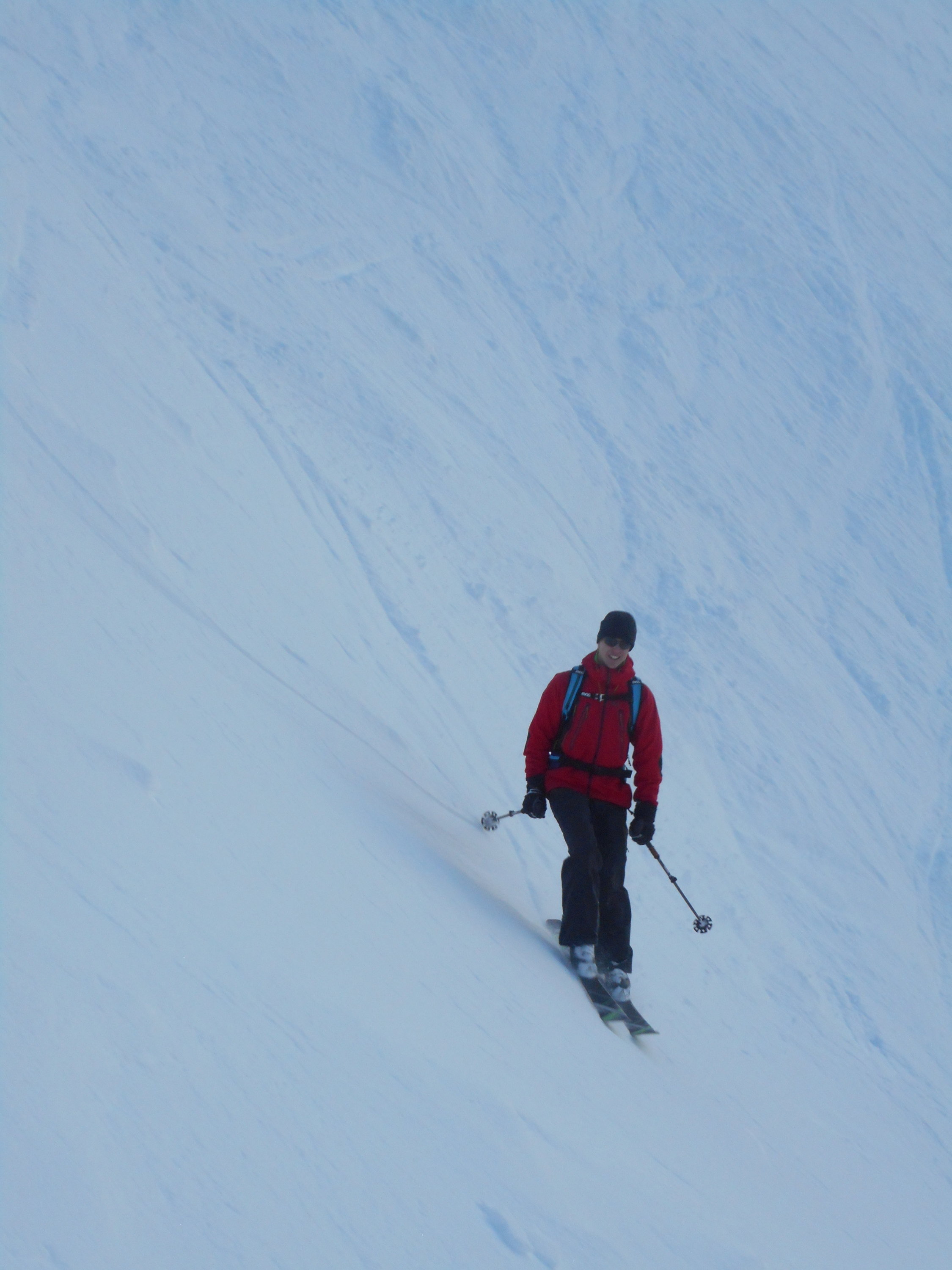 Abfahrt durch die 35 - 40 Grad steile Nordostflanke.