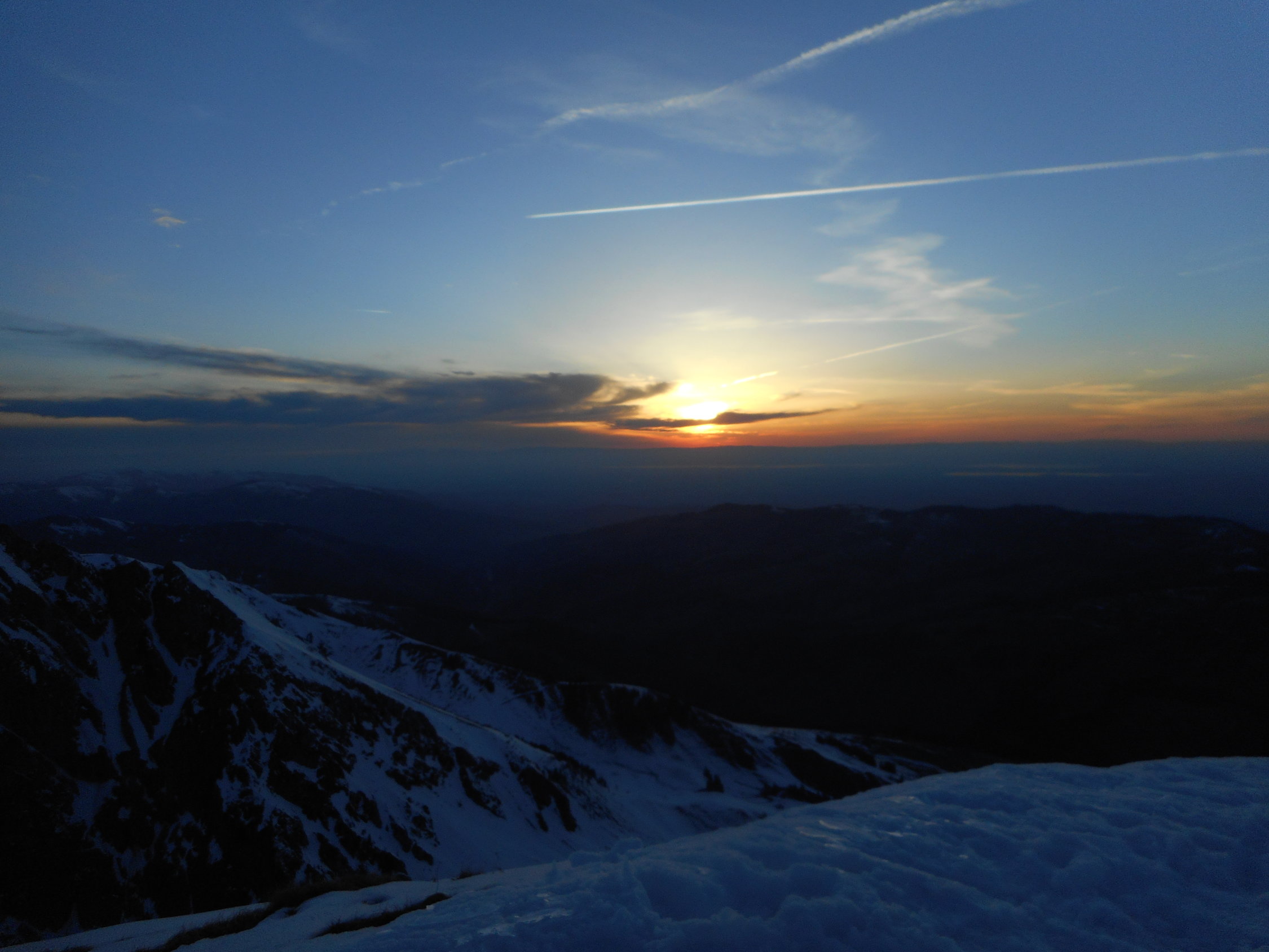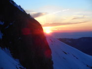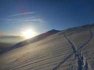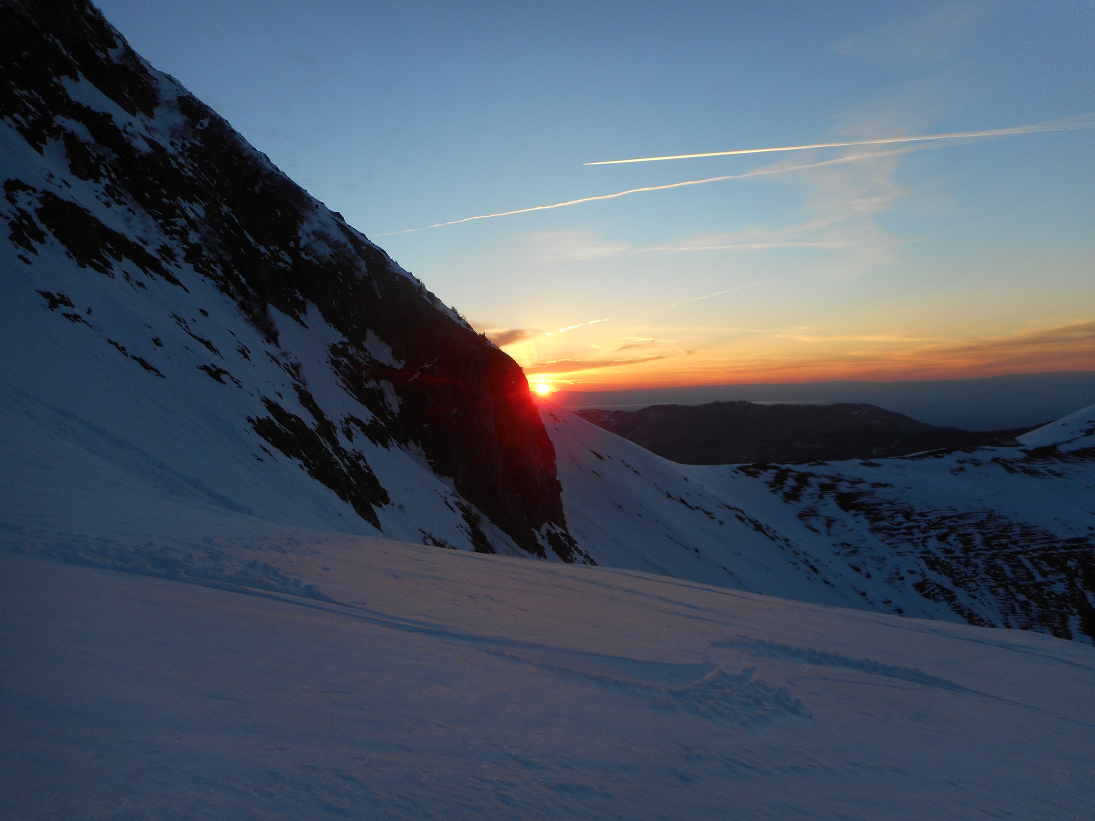 Abend Skitour mit prächtigem Sonnenuntergang.