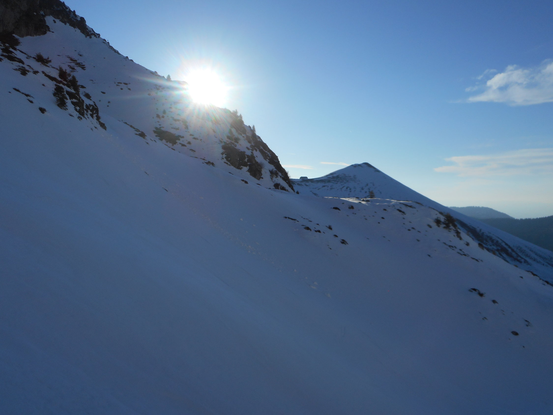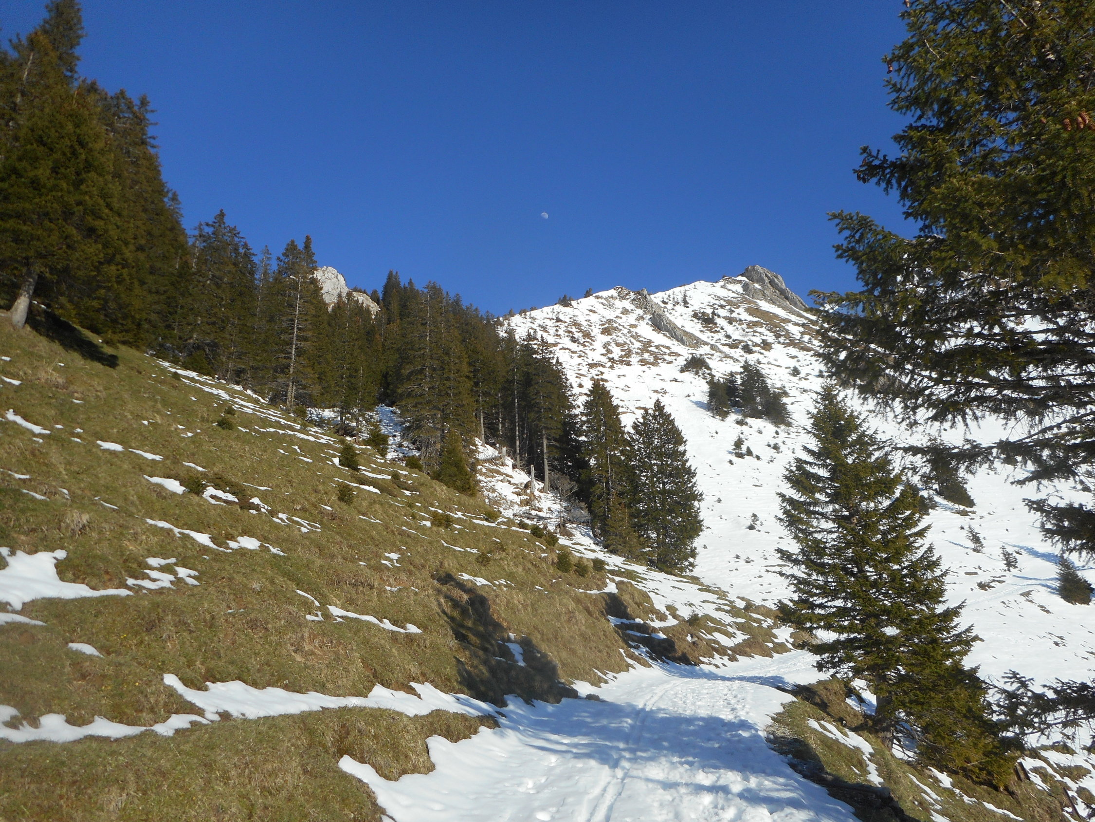 Aufstieg: Traumhaftes Wetter. In der Sonne mild, und bis auf den Gipfel windstill. Auf dem Gipfel vom Bürglen schwacher Westwind.