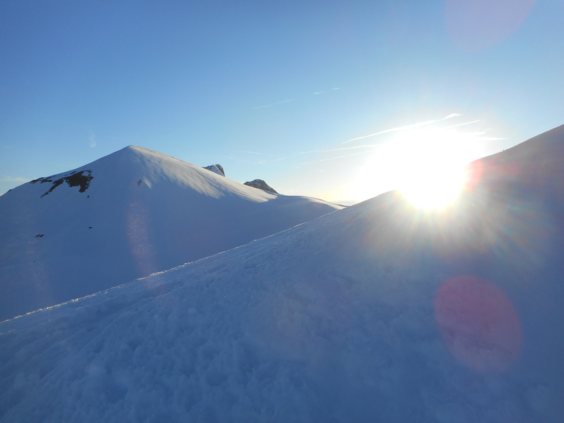 Prächtige Sonnen-Untergangs Skitour. Ankunft auf dem Gipfel vom Bürglen 2165m um 20.00 Uhr.