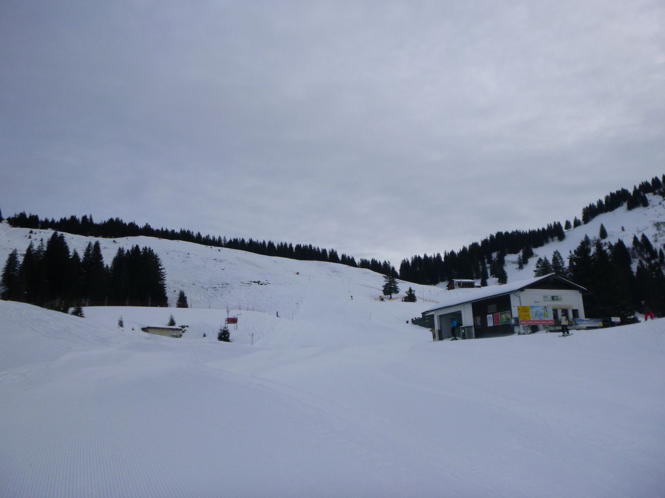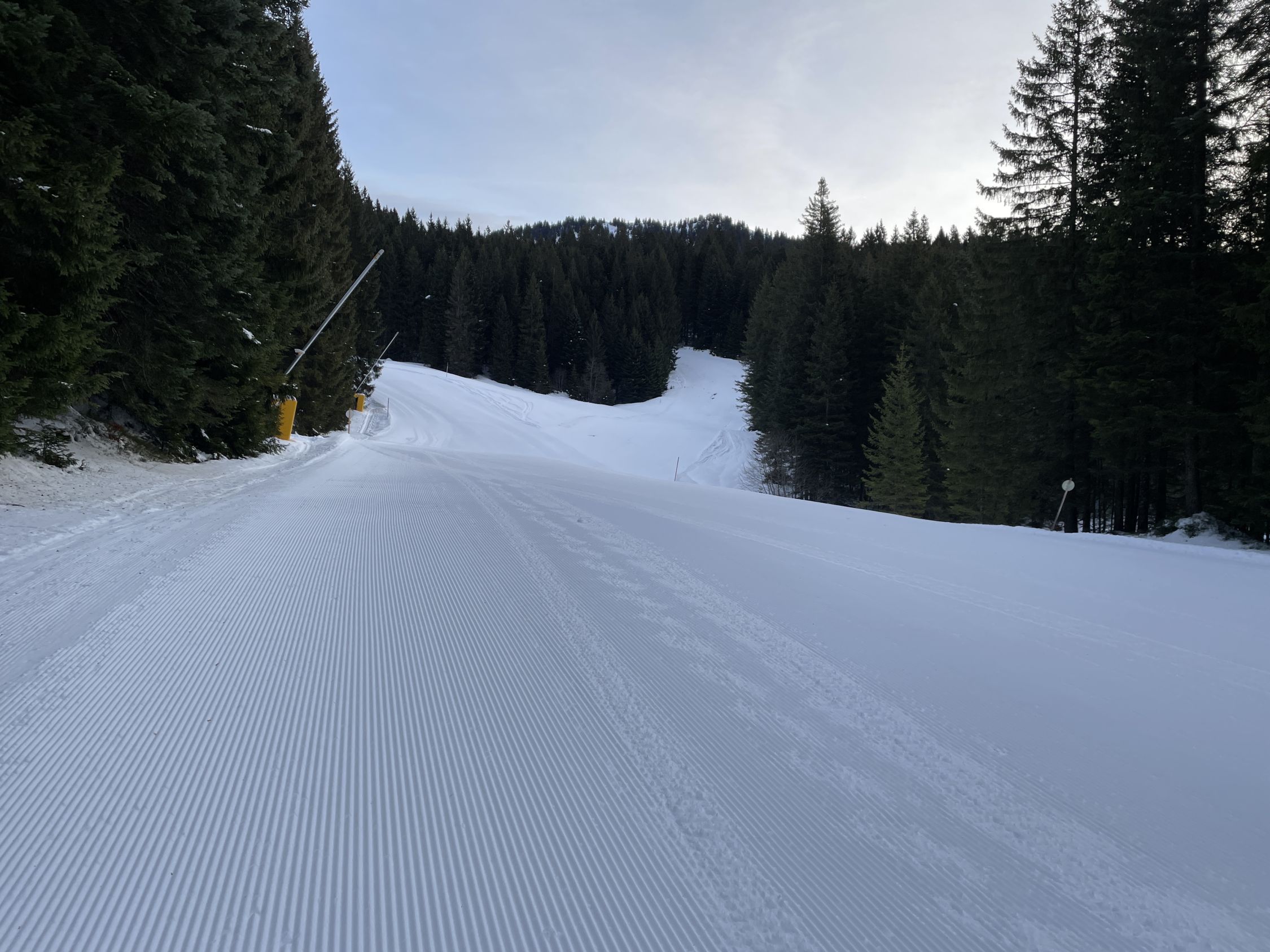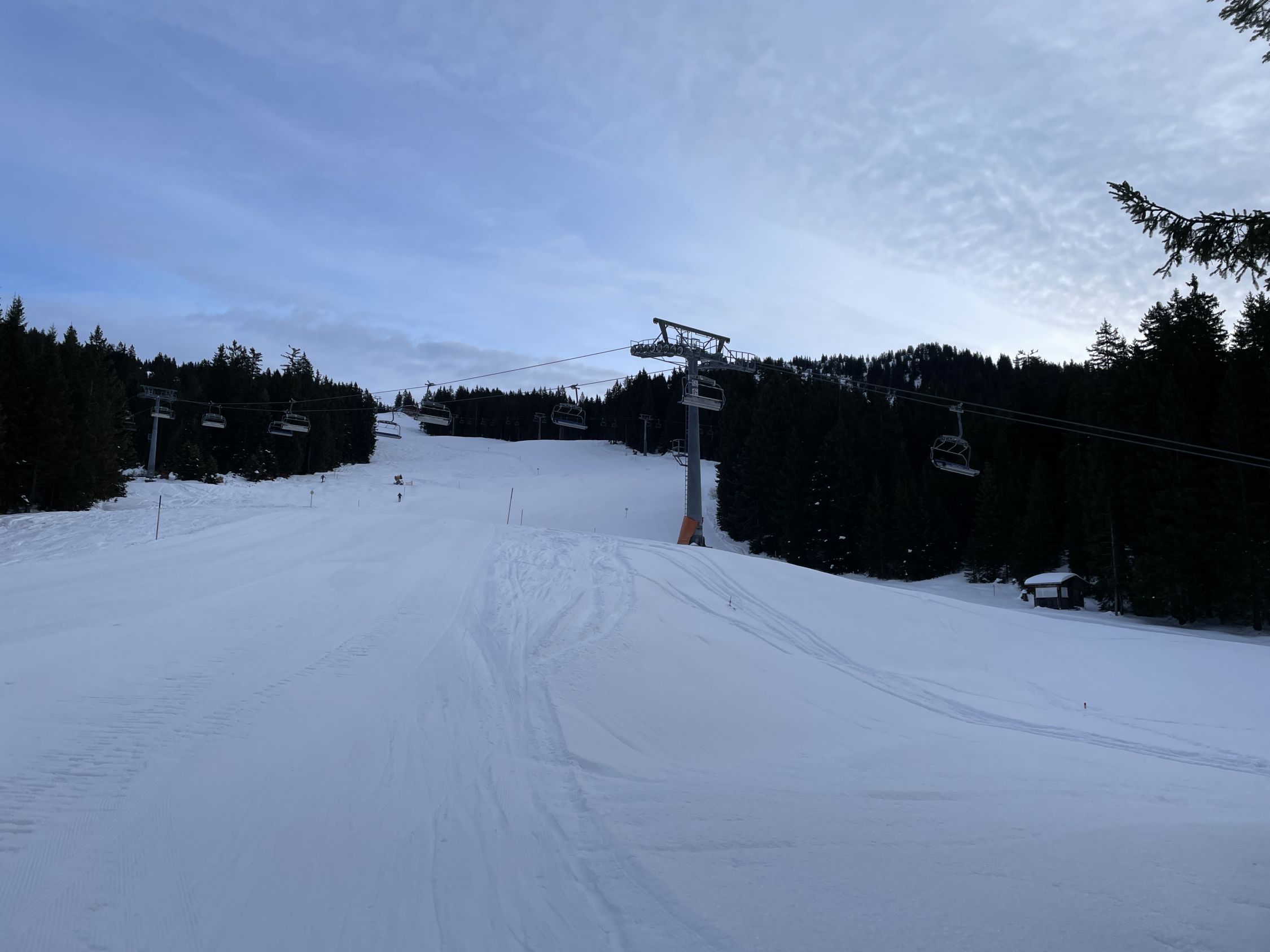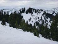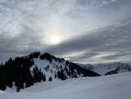 Da ich früh gestartet bin, stieg ich noch vor Betriebsbeginn des Sesselifts zum Berghof über die Piste Nr. 10 auf. Dabei überholten mich 6 Skitourengänger. Im Abstieg kamen mir dann viele entgegen, auch auf oberem Winterwanderweg.