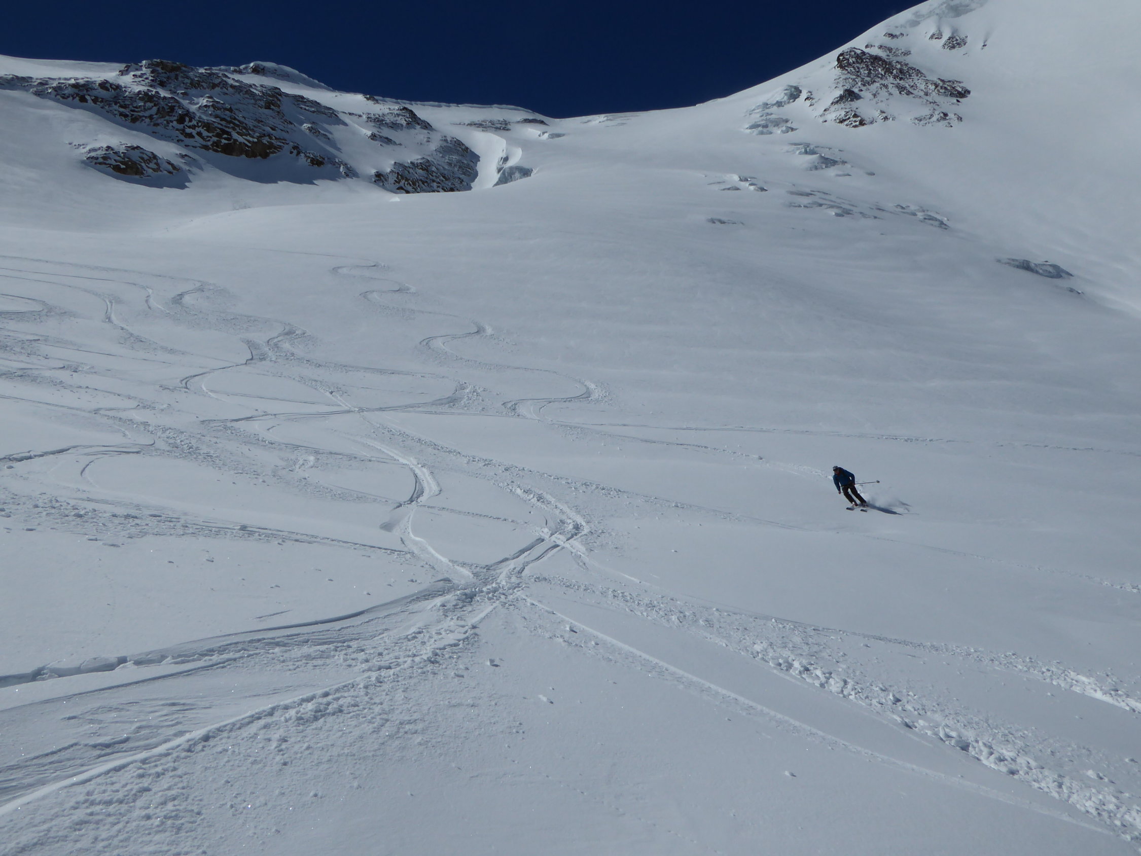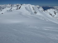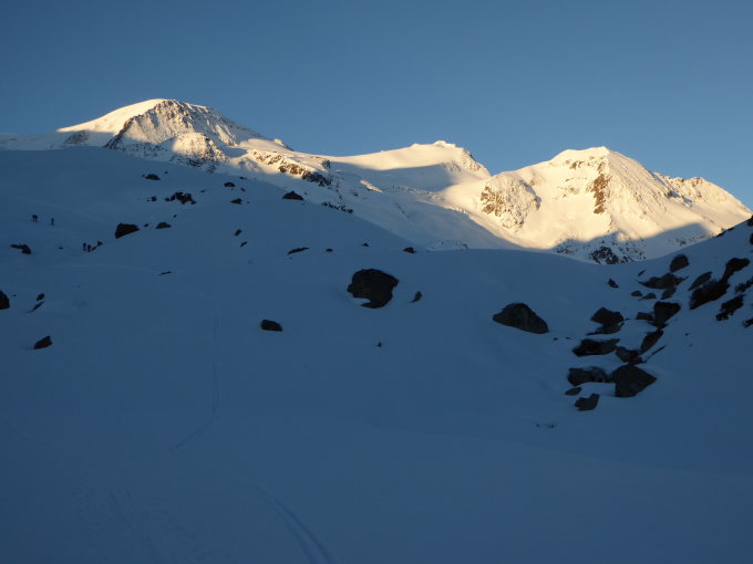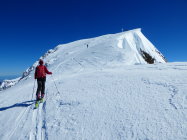 Start ab Strasse Steingletscher. Schnee über Nacht gefroren. Aufstiegsspur vom Vortag teilweise etwas glitschig, man konnte jedoch gut daneben aufsteigen, da der Schnee tragend war. Im oberen Teil Pulverschnee auf einer festen Unterlage. Die Abfahrt war auf der ganzen Strecke ein Traum (ein schöner). Gletscher sehr gut eingeschneit, somit keine Spalten im Bereich der Aufstiegslinie.