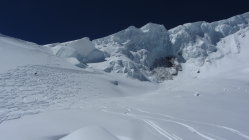 Am 8. und 9. Mai zahlreiche, zum Teil große Abgänge aus der Nordwand der Aiguille di Midi. Petit Plateau unter den Seracs heikel wie immer.