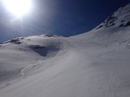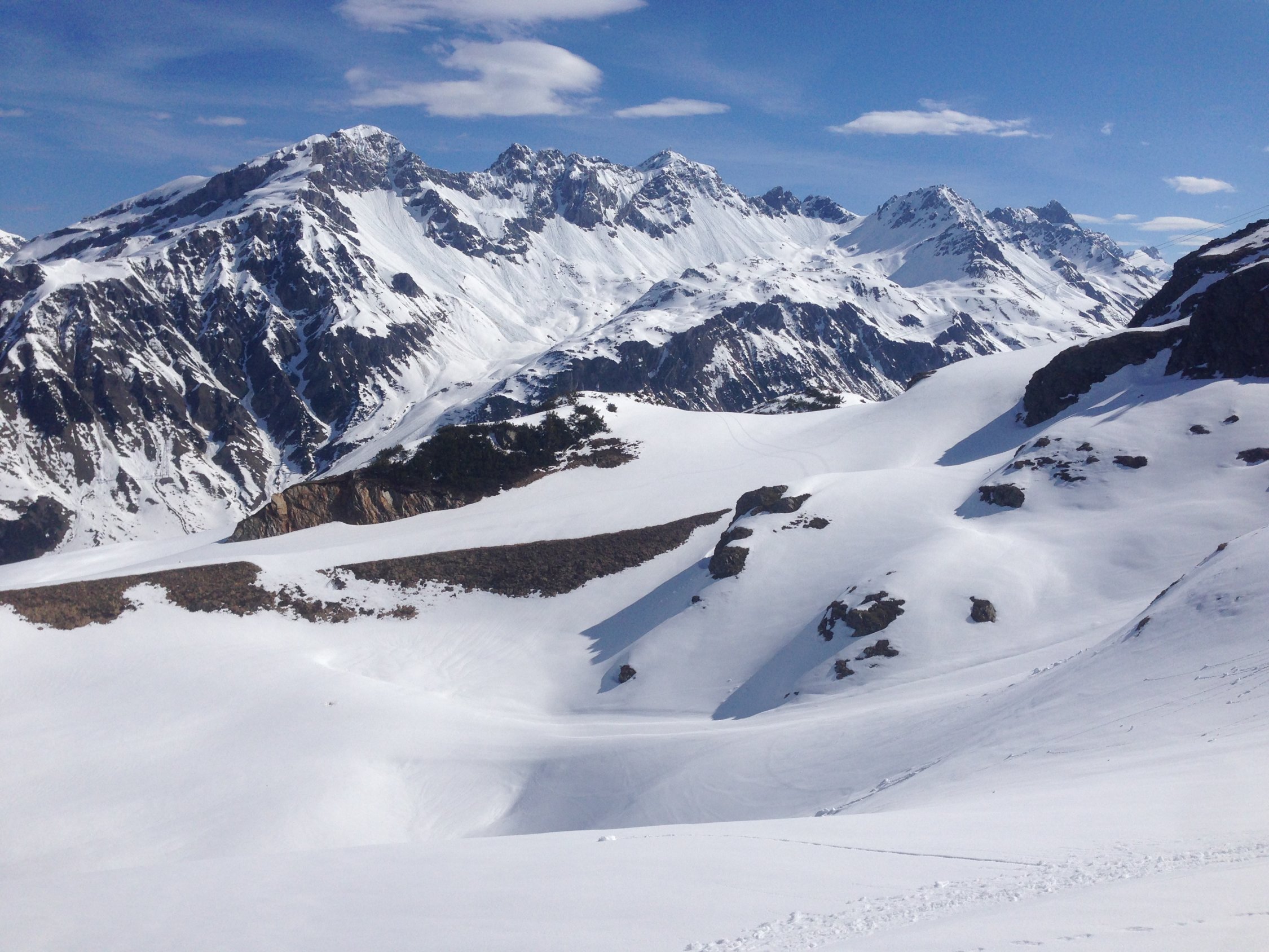 Aufstieg bis Albonagrat. Geschlossene Schneedecke ab Alpe Rauz. Fast ganz durchgefroren beim Start um 7:15 Uhr. Aufstieg perfekt. Abfahrt auf Firn, Harsch und im unteren Bereich Sulz. Sonnenschein und leichter, kühler Wind. Perfekt für diese Jahreszeit.