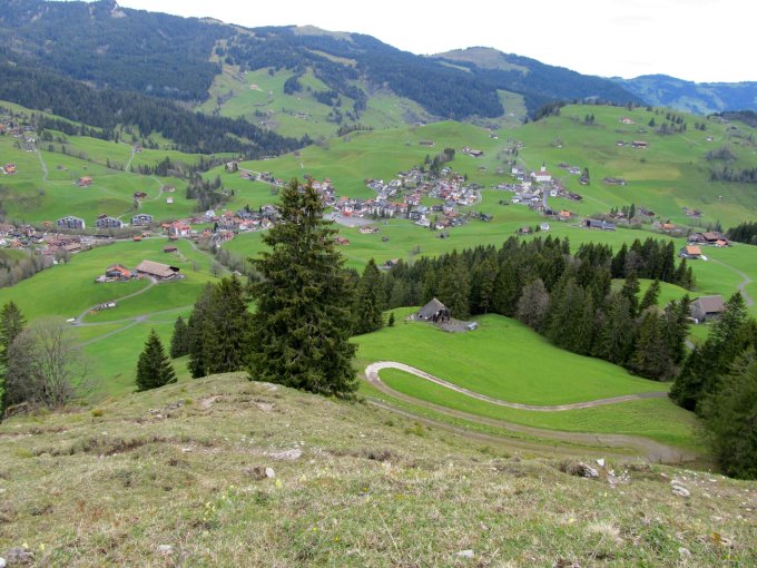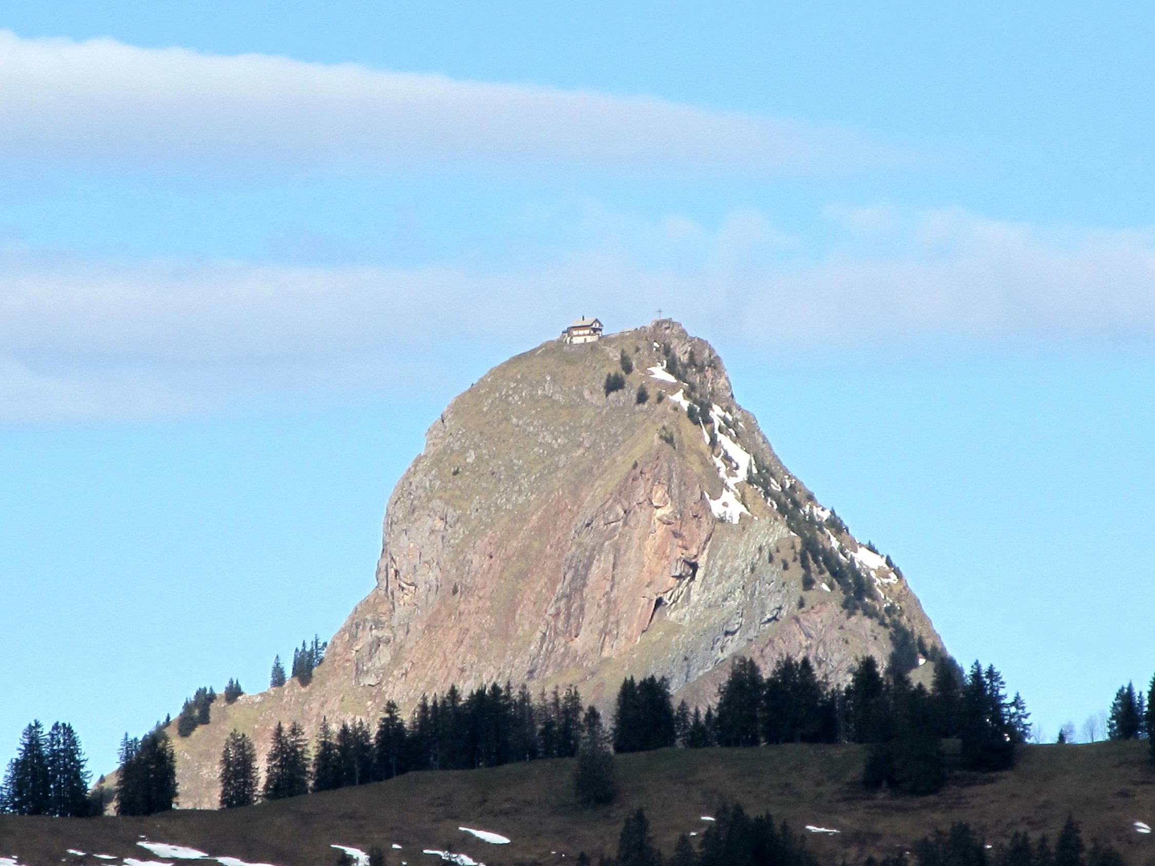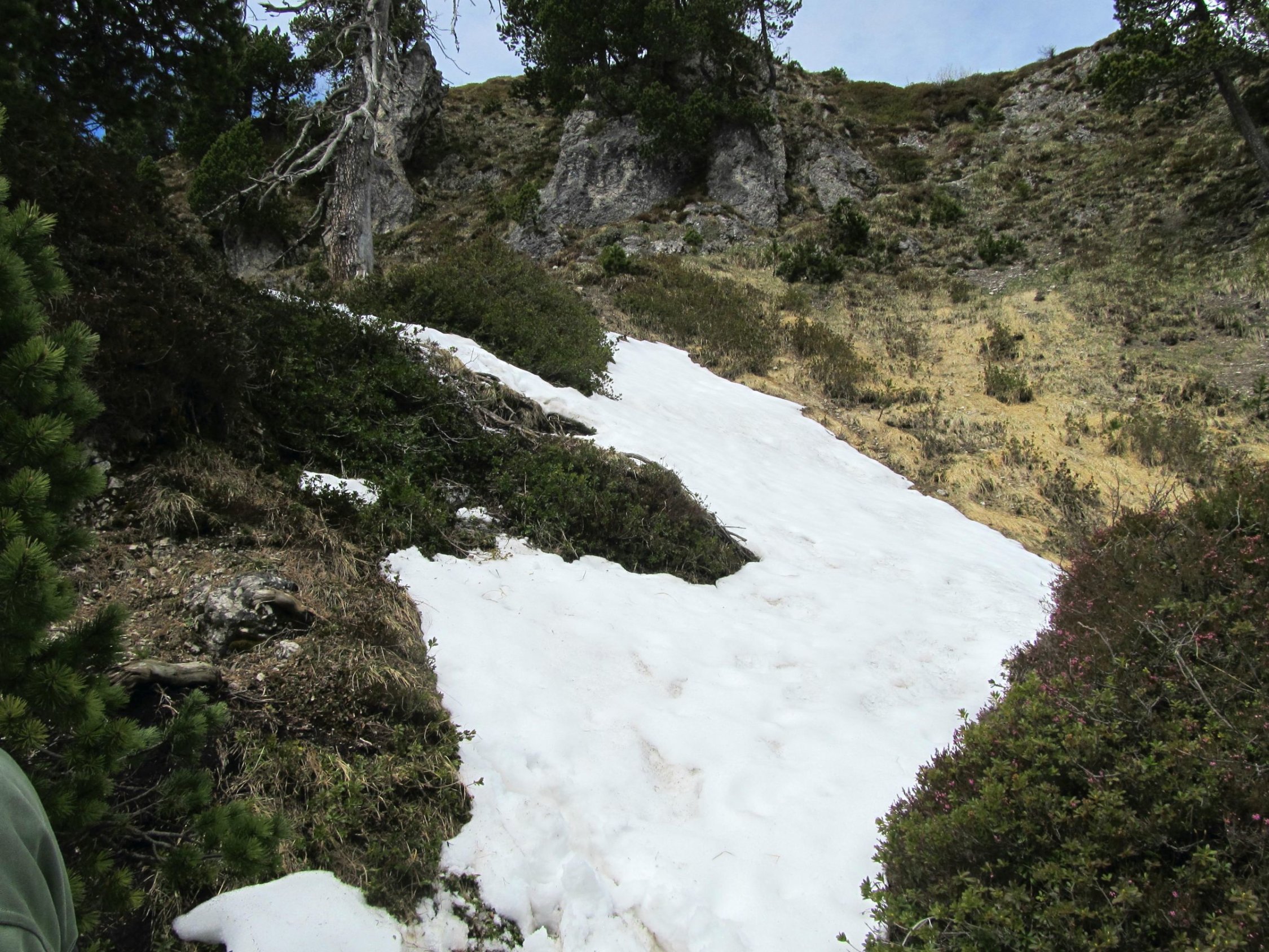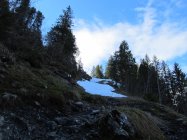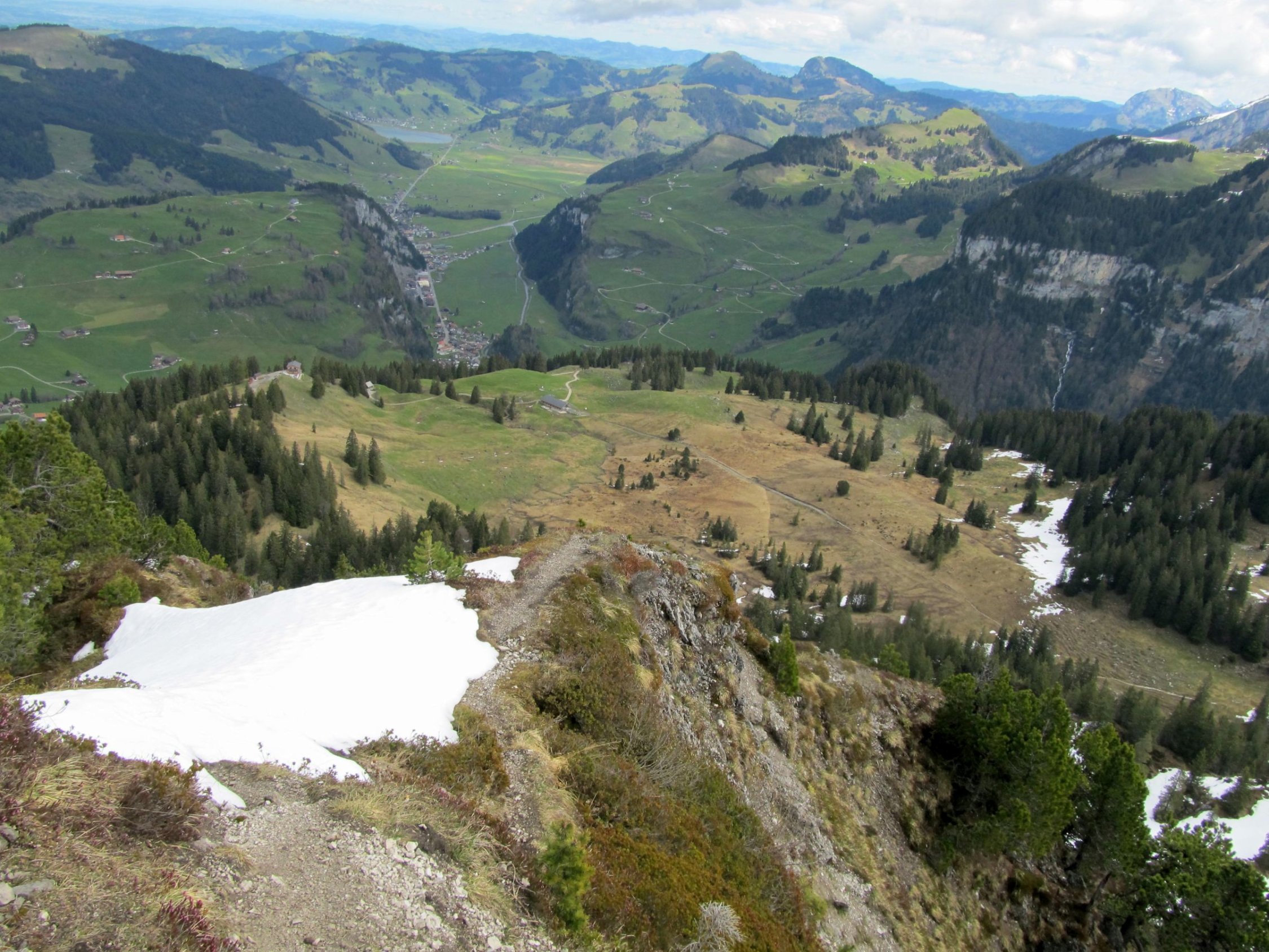 Bei der Ankunft in Oberiberg zogen die Wolken ab. Die Wege waren z.T. feucht oder auch matschig. Beim Aufstieg war Altschnee nur in einer nordexponierten Passage auf ca. 50 m anzutreffen, der gut trittig war.