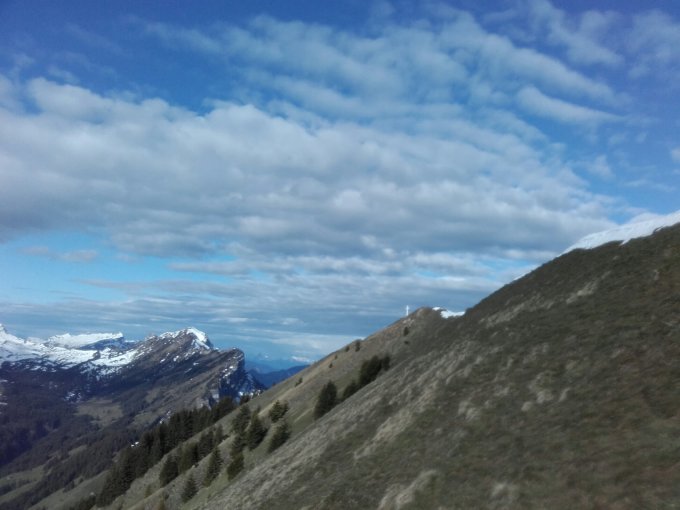 Fast alles schneefrei und gut zu gehen. Auch der Regen der Nacht war nicht mehr sehr zu sehen, dafür viel mehr die Morgensonne die den Berg erhellt.