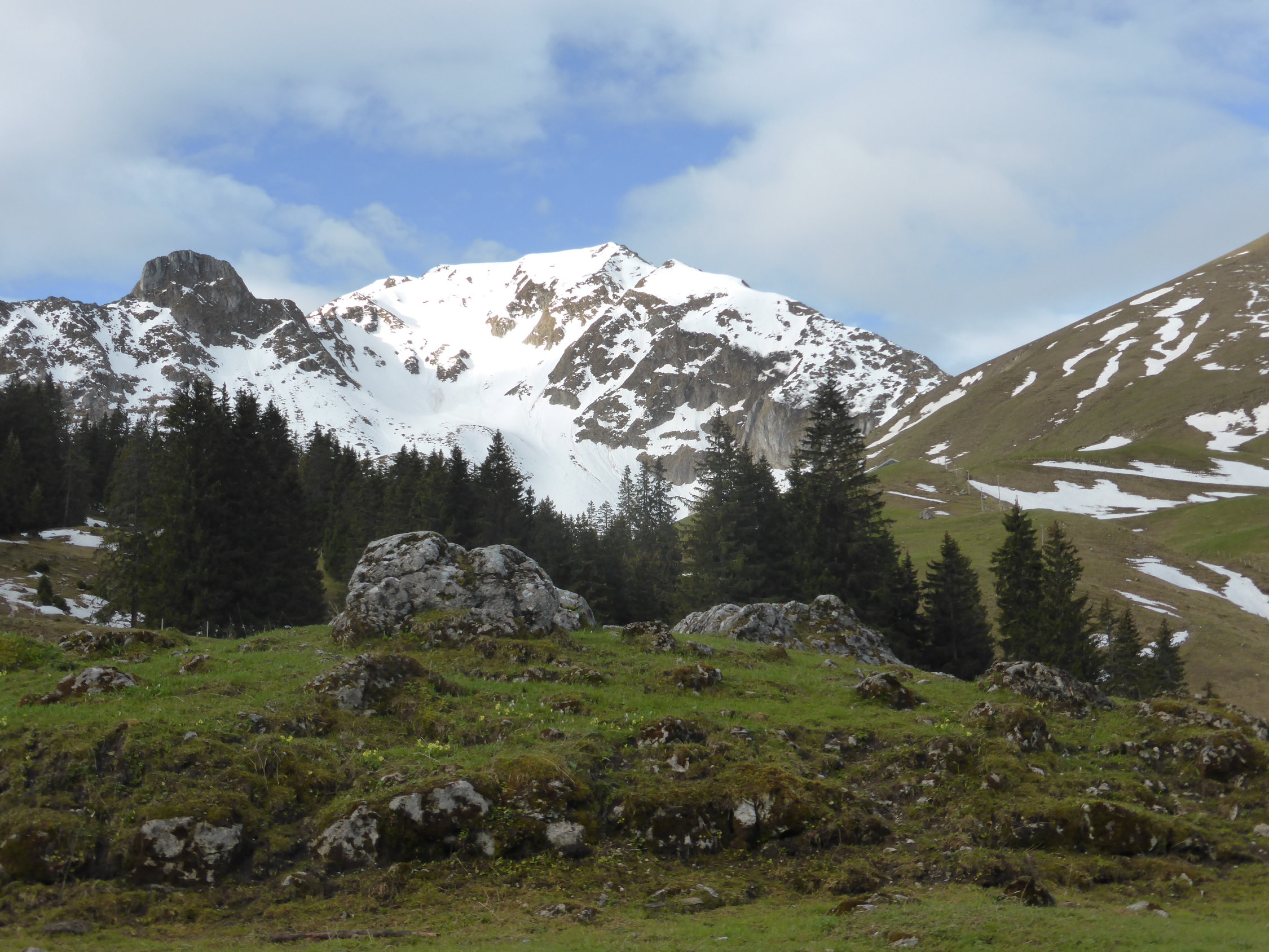Wetter: bei der Anfahrt noch sonnig, während des Aufstieg dann rasche Bewölkungszunahme mit jedoch wieder wechselnder Bewölkung, in der Höhe starker Westwind, auch ein paar Nieselregenphasen dabei, Temperatur bei der unteren Gantrischhütte +6 Grad, am Gipfel +5 Grad