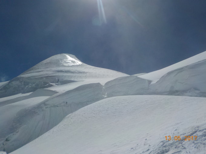 Wir sind mit den Ski bis zum Gipfelgrat. In guter Spur in Trittschnee bis auf den Gipfel.