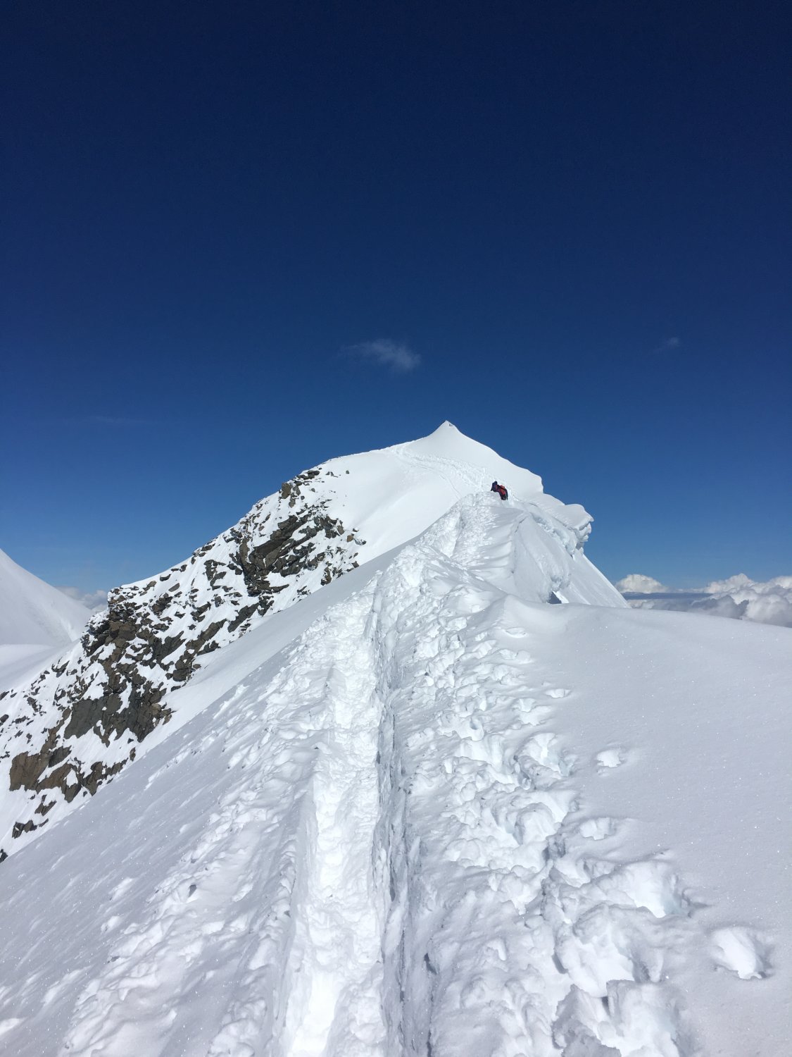 Leider mussten wir durch den Aufkommenedn Nebel unsere Gipfelversuch abbrechen. Das Spuren hätte noch länger gedauert.