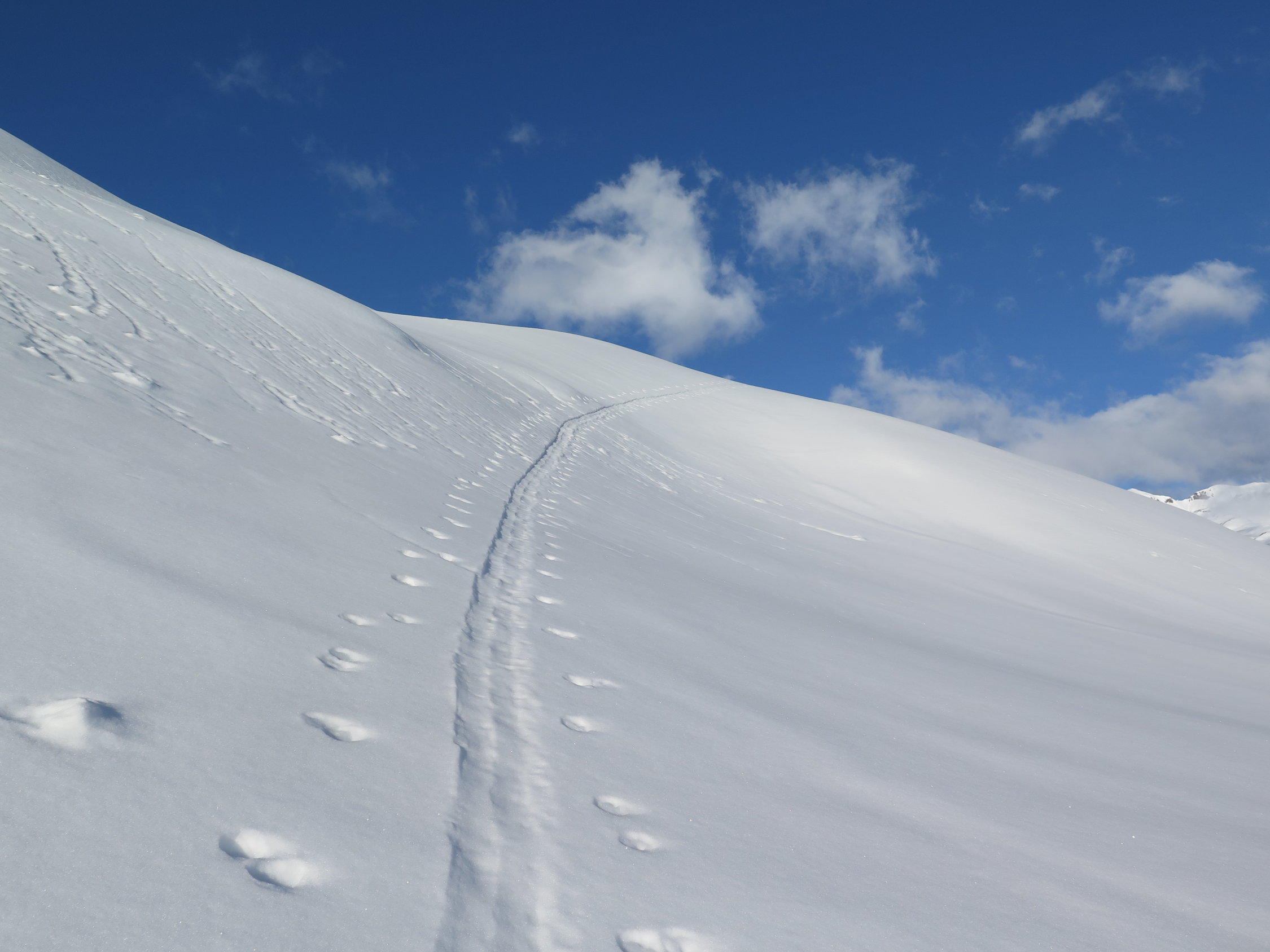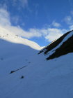 Ab dem Graben war der Schnee sehr weich und schwer. Ging aber trotz erheblicher bremswirkung nicht schlecht zu fahren.