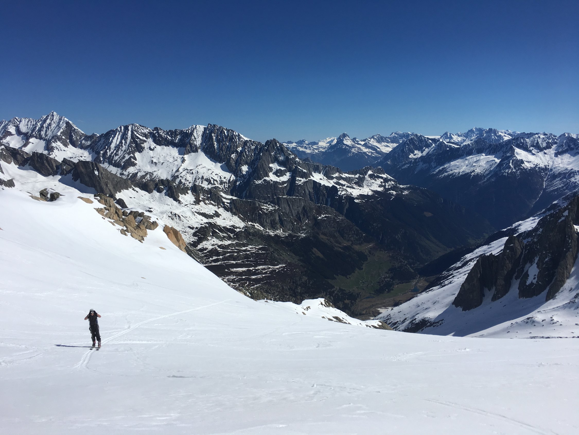 Die Abfahrt um 11 Uhr gestaltete sich oben gut bis sehr gut (gut aufgefirnt), zwischendurch bei Südosthängen jedoch bereits etwas tief. Eine Stunde früher wäre es sicher besser gewesen. Unterhalb 2300 war es dann fertig: tief aufgeweichter Schnee!