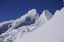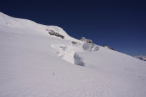 Einzigartige Gletscherszenerei mit Spalten und Abbrüchen. Seil im Aufstieg!