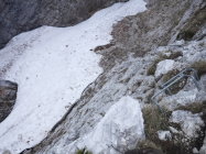 Die Nordseite (Val del Merlo) ist noch stark verschneit. So auch der Nordseite Querweg zwischen Monte Cornetto und Cima Verde.