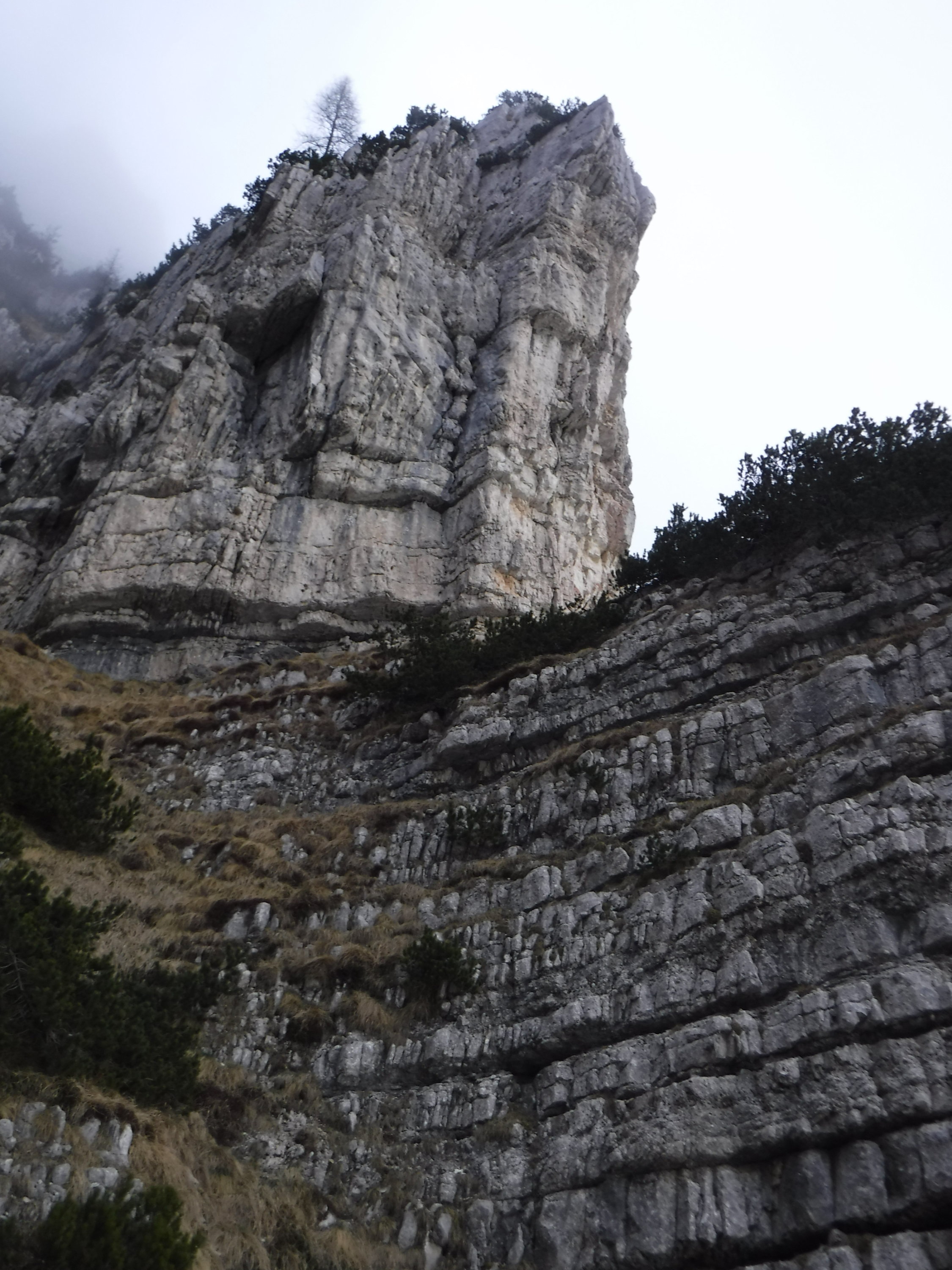Tourenbeginn um 07:30 Uhr bei 6°C und strahlender Morgensonne, die jedoch am Vormittag von Wolken und Nebel eingeholt wurde. Ab Mittag dann zeitweise dicker Nebel in der Gipfelregion.