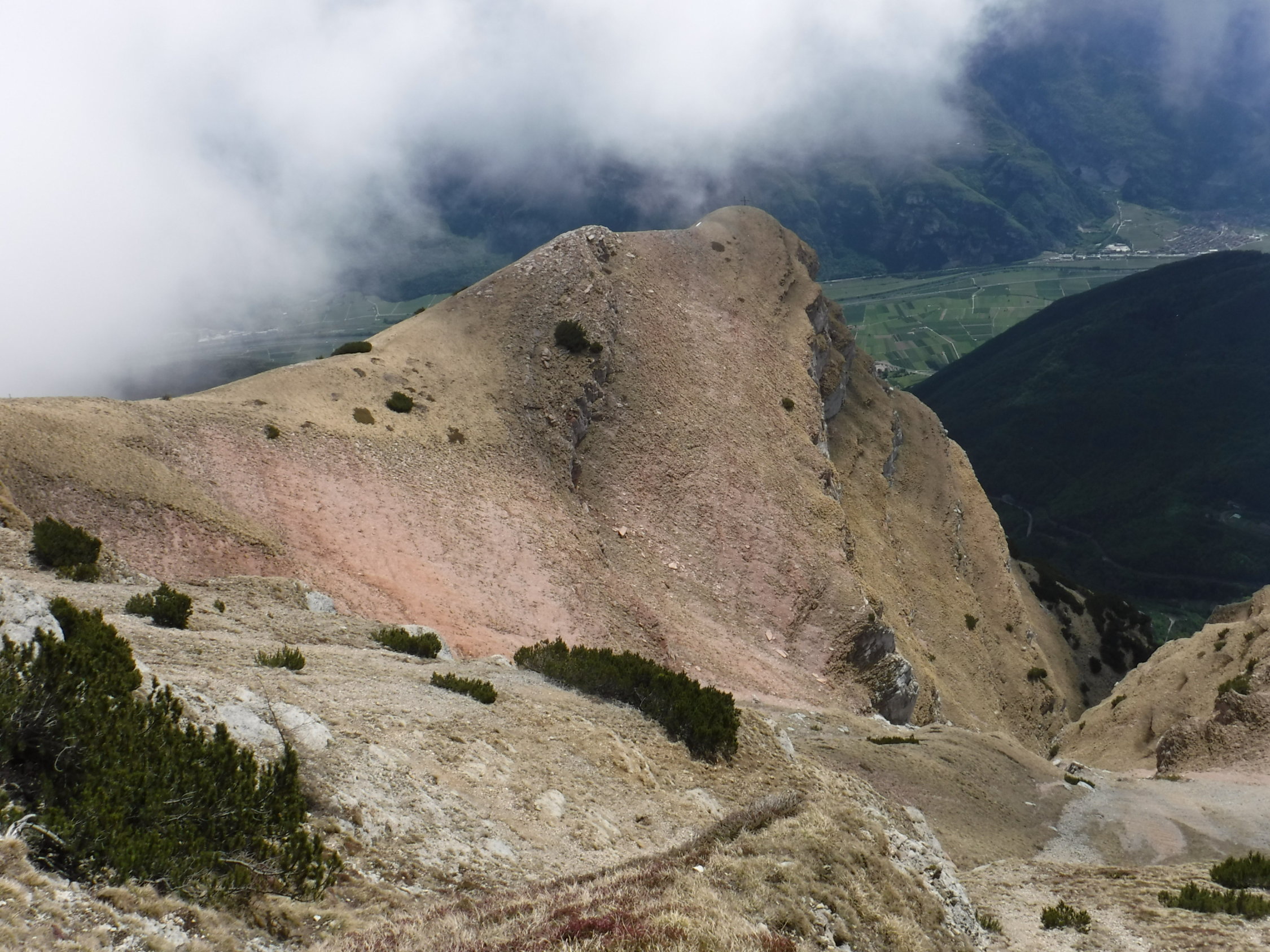 Im Aufstieg-Steig überholte mich ein Einheimischer. Auf dem Gipfel trafen Wanderer ein, die alle winterlich gekleidet über die Nordseite die Rundtour über die 3 Gipfel des Monte Bondone liefen.