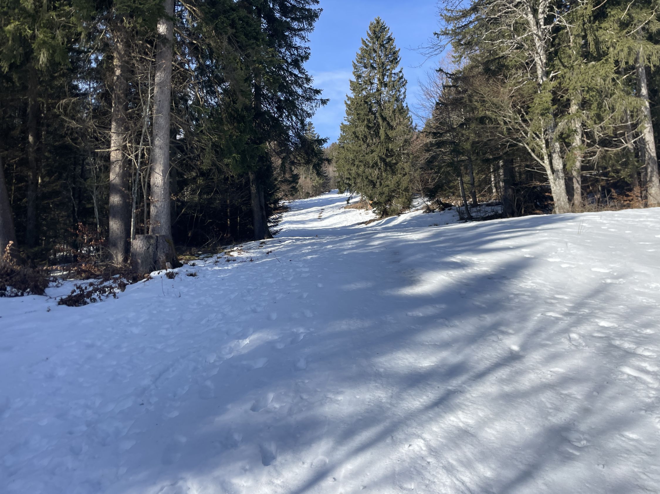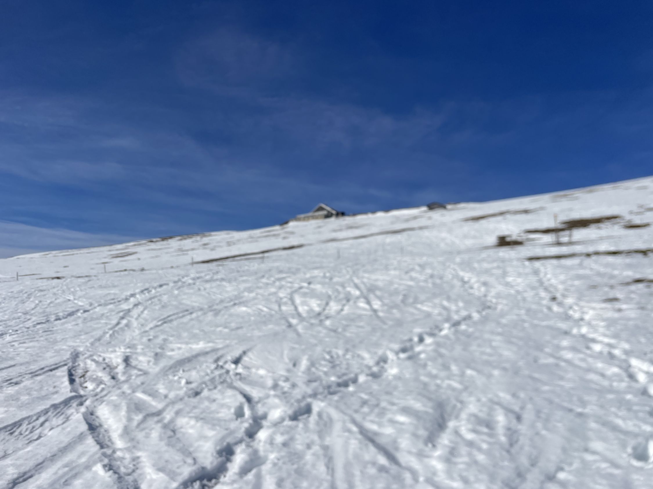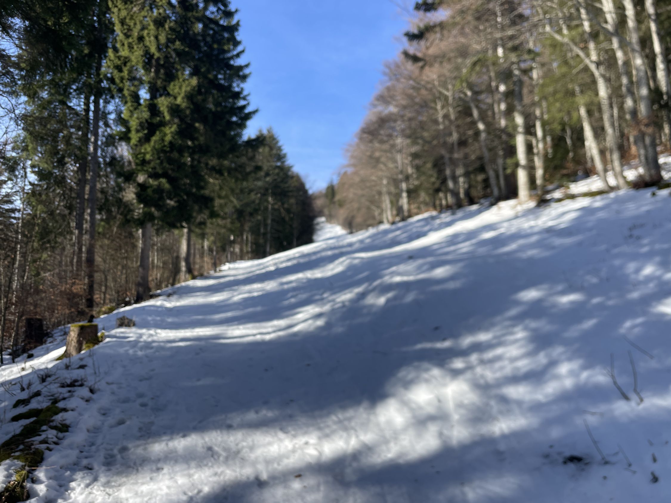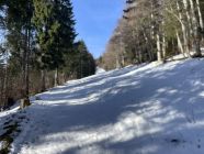Wie zu erwarten unten am Skilift viele apere Stellen. Danach für den Auftsieg OK bis Hotel. Abfahrt recht OK. Im unteren Teil muss man sich die Linie etwas suchen. Bis Parkplatz ohne abschnallen. In den sonnigen Stellen angesulzt, im Schatten hart. Alles im Allen noch zu machen. Hatte erwartet, die ersten 100 hm zu tragen.