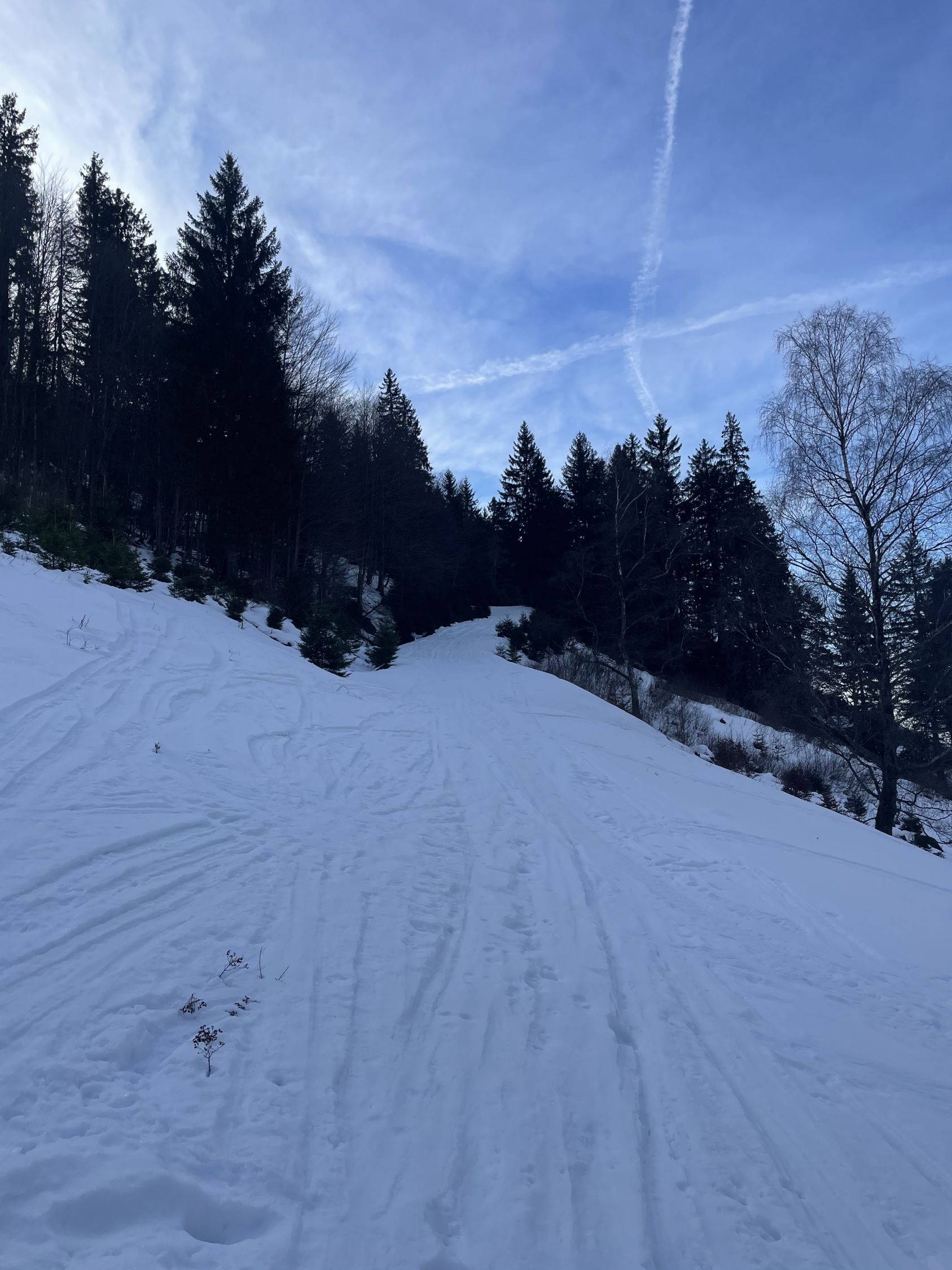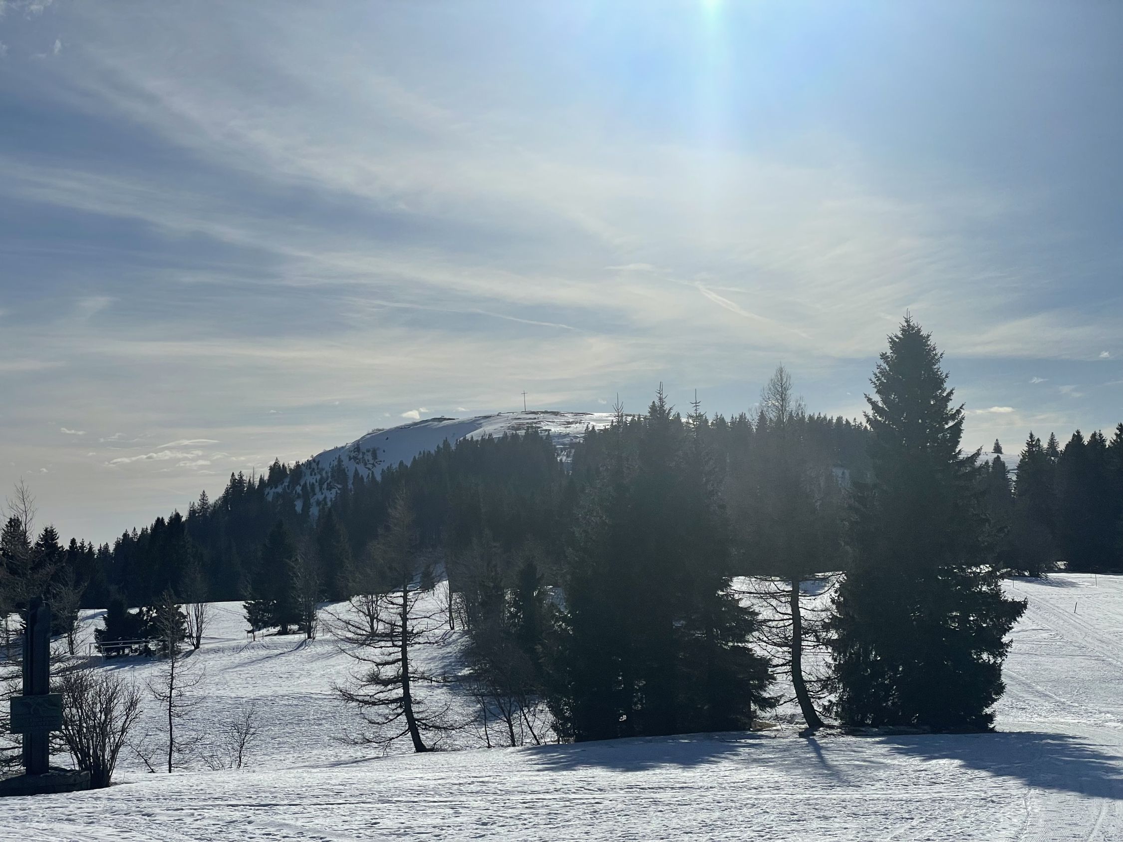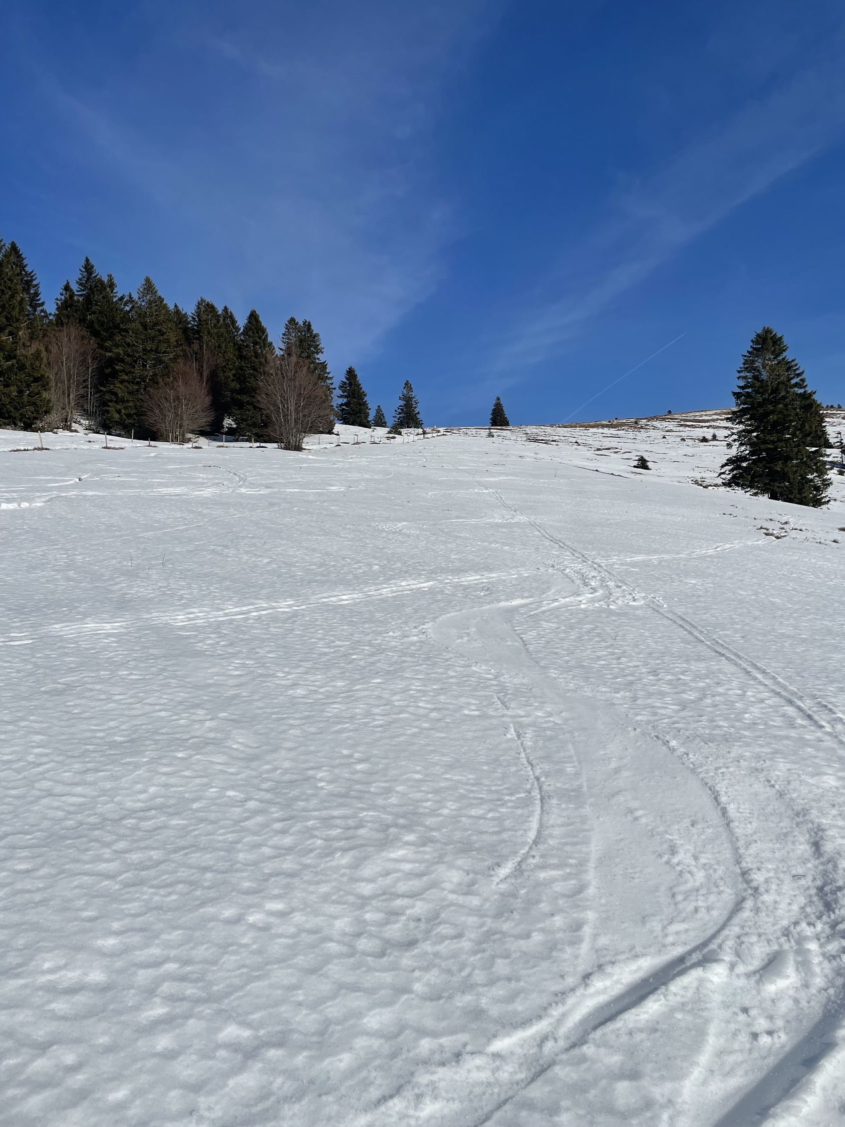 Heute bin ich von der Talstation Herzogenhornbahn bei plus 3 Grad und gutem Wetter los, und zwar nicht Richtung Feldbergpass, sondern rechts hoch, zuerst der blauen Piste (nicht präpariert) nach und dann beim Waldschweineweg (!) wie ein solches gerade hoch in den Wald, einfach der Nase nach. Das war abwechslungsreich und passte mir sehr. Weit oben beim Start der Weltcupabfahrt hab ich dann die Piste wieder gefunden, dann ist man ja auch schon auf der Grafenmatt. Von da runter zur Glockenführe und rauf aufs Herzogenhorn ist es nicht weit. Schöne Rast mit wenigen, aber netten Tourengängern und Wanderern. Dann Abfahrt in südliche Richtung, toller Sulz, ich wollte von dort noch runter ins Prägtal, aber dort trug der Schnee nicht mehr. Also wieder rauf auf den Gipfel und die kurze Abfahrt zur Glockenführe war immer noch hart tragend. Wieder rauf auf die Grafenmatt und zum Schluss die Wiesenquellabfahrt bis zum Auto. Tipptopp.
