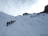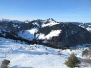 Schönes Wetter, nur wenig Wind. Der ganze Aufstieg verläuft im Schatten. Nur oben auf dem Grat und bei der Abfahrt oberhalb des Waldes kommt etwas Sonne dazu.