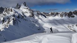 Von Partenen aus zum Vermuntstausee über den Litznersattel zur Sonntagspitze. Retour über den Sattelkopf (Steigeisen derzeit zu empfehlen) und Abfahrt bis Partenen.