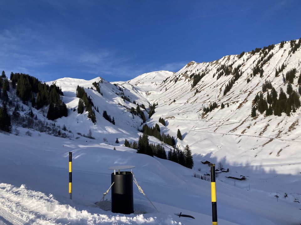 Immer wieder schön, auf dem Höch Gumme zu stehen. Das Panorama ist ganz einfach umwerfend. Heute sowieso; bei dem Föhnsturm war Standhaftigkeit gefragt. Die Abfahrt ging heute problemlos, trotz der vielen Spuren.