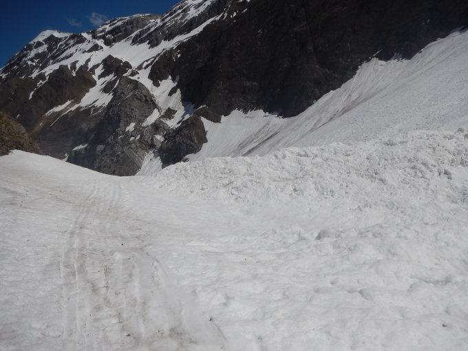 Recht große Lawine von den Vortagen unterhalb und kleine Rutsche auf Höhe des Sees