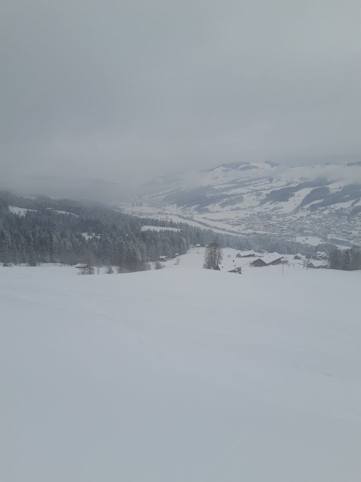 Schöner Pulver, Wir sind ab Ebnat Kappel Aufgestiegen, im Dorf etwa 30cm, zum Start noch bedeckt und leichter Schneefall Skilift war in Betrieb, aber wenig Leute auf der Piste, die meisten Leute sind über Abschlagen Aufgestiegen, rechtzeitig für die Abfahrt wurde das Wetter schön