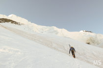 Couloir du Gardien: Bis zum unteren Felsriegel mit den Ski, dann weiter mit Steigeisen.