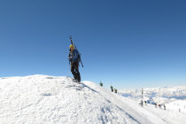 Hüttenzustieg über den Sommerweg. Skitragen bis das Gelände flacher wird.