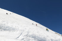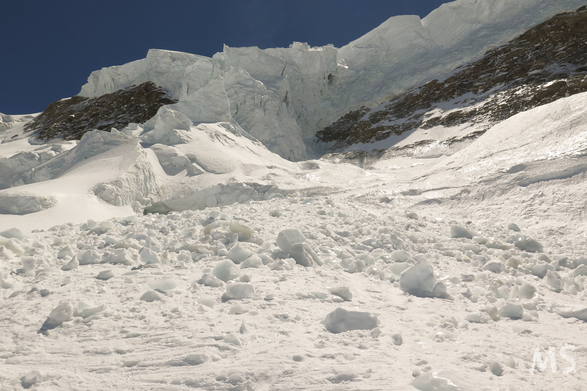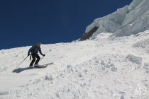 Corridor: Bei der Einfahrt noch sehr schöner Pulver. Dann Trümmerfeld, es scheint vor kurzem einiges heruntergekommen zu sein. Unangenehmes runterrutschen. Danach Firn bis zur Hütte.