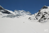 Combin de Valsorey: Skidepot unterhalb des Gipfels und weiter zu Fuss.