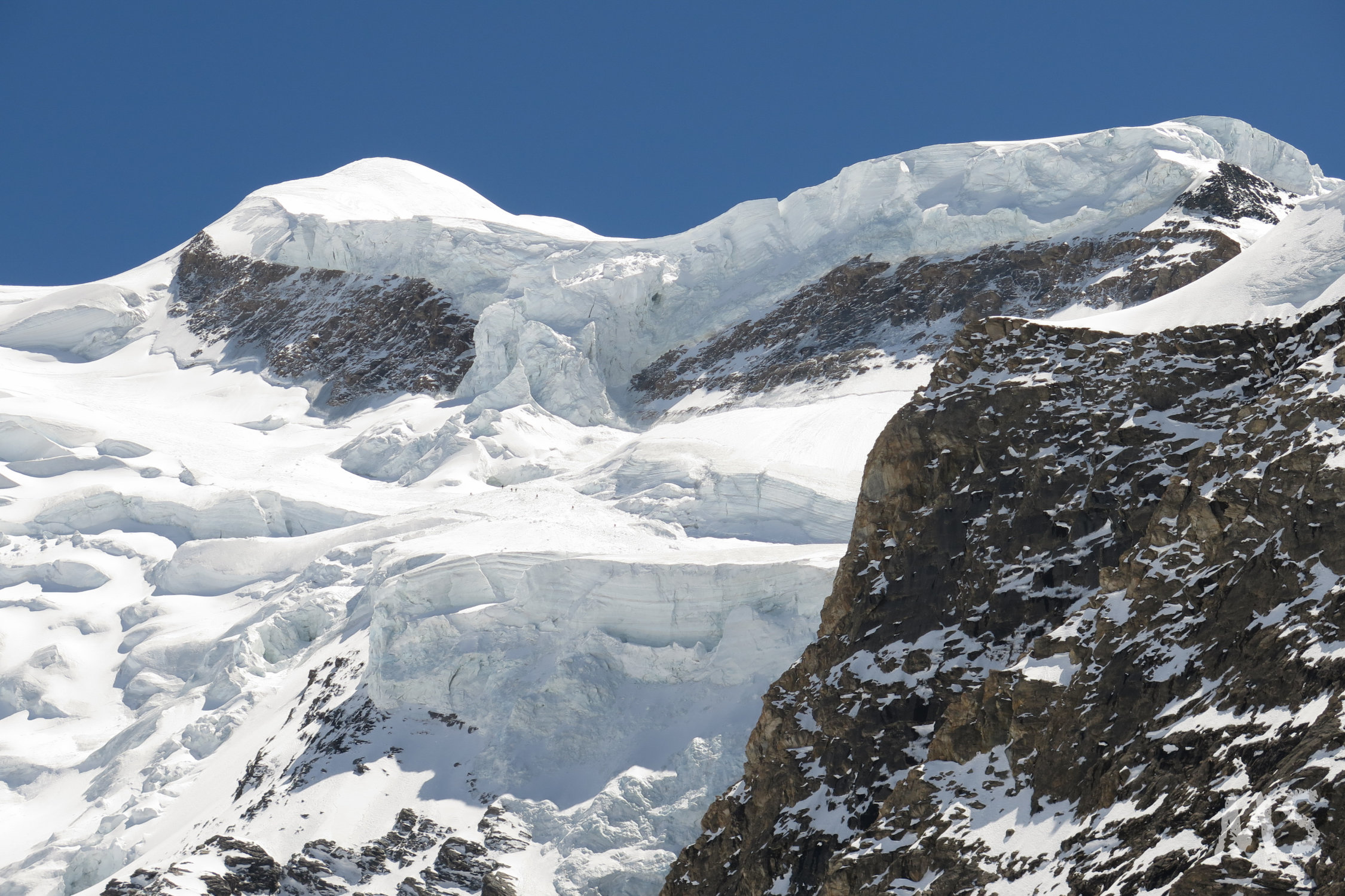Überschreitung Aiguille du Croissant: Mit den Steigeisen, oft eisig. Auf Wächten achten, nicht zu weit rechts gehen.