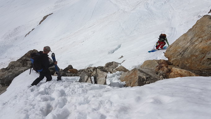 Die Tragstrecke bei der Passage auf 2620 MüM wird länger und wird wohl täglich "kaputtgefahren". Heute war die Spur gerade so aufgeweicht um solid nachgetreten werden zu können.