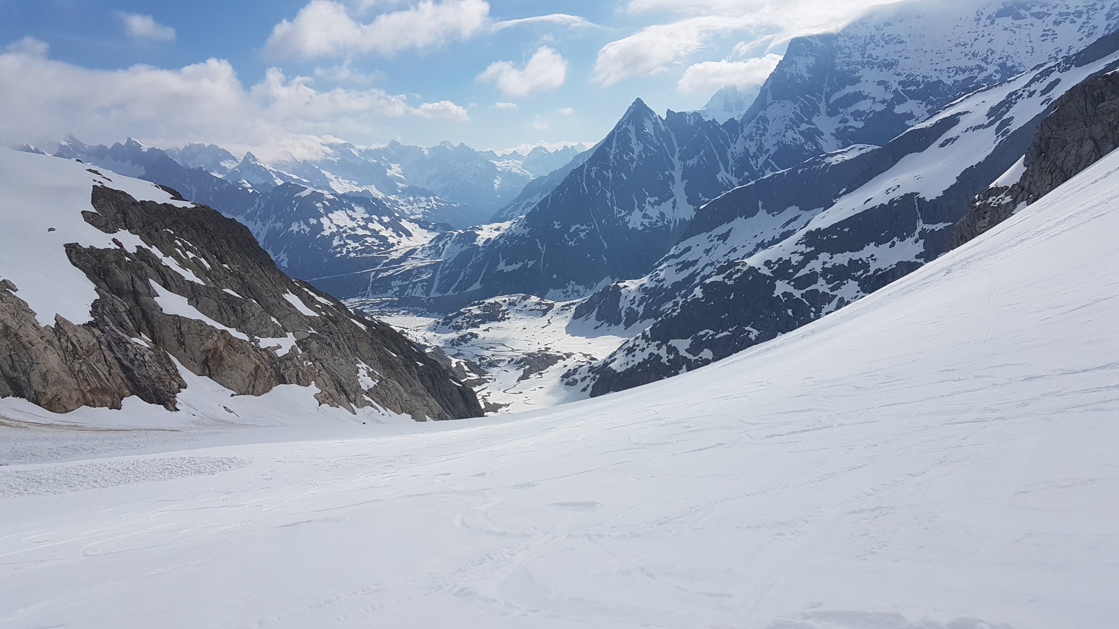 05h30 ab Parkplatz Steinsee auf weicher Unterlage gestartet. Abfahrt um 8h30, oben schöner Sulz, unten noch gerade tragend.