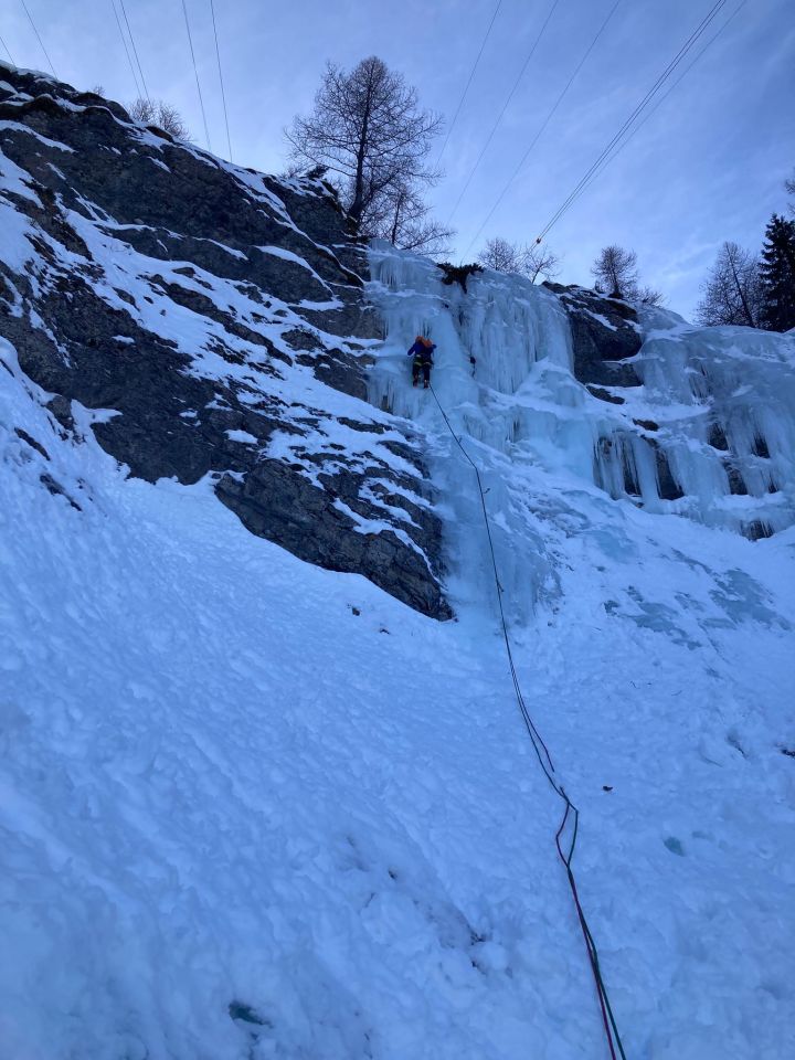 Verhältnisse machbar bis gut. Der wärmere temp haben sein aufwirkung, aber war gut kletterbar, eis teilweise sehr luftig, am manche stellen softeis vorhanden (weiter oben)