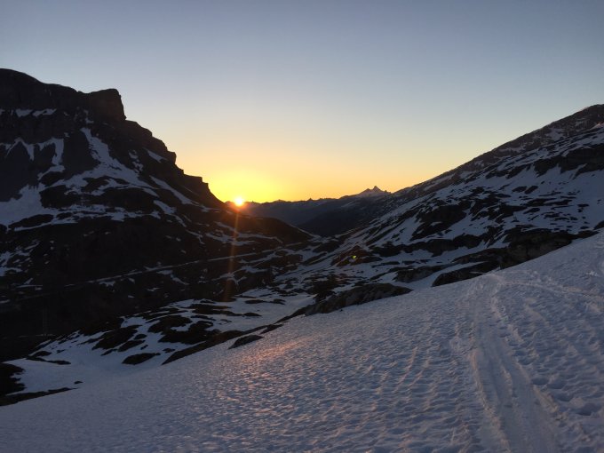 Schnee ab ca. 2'200 durchgefroren. Bei Abfahrt über Chammlilücke um 10:30 in der Nordost-Flanke und im oberern Griessgletscher bis auf ca. 2'300 ausgezeichnete Sulzverhältnisse.