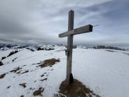 Zum Teil apere Stellen, können umgangen werden. Föhn auf dem Gipfel. Abfahrt etwas verfahren.
