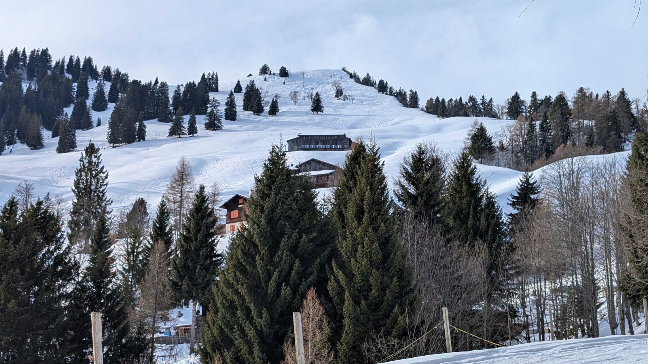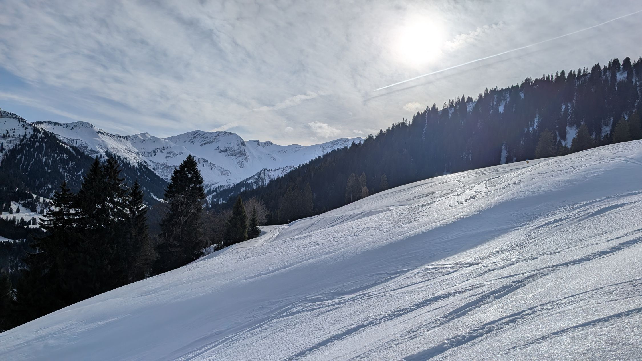 Untern schon sehr schwerer Schnee, oben bis zur Alpstraße runter ein Traum zu fahren. Heute ausnahmsweise mit Splitboard und nicht mit Ski unterwegs, hat sich rentiert.