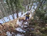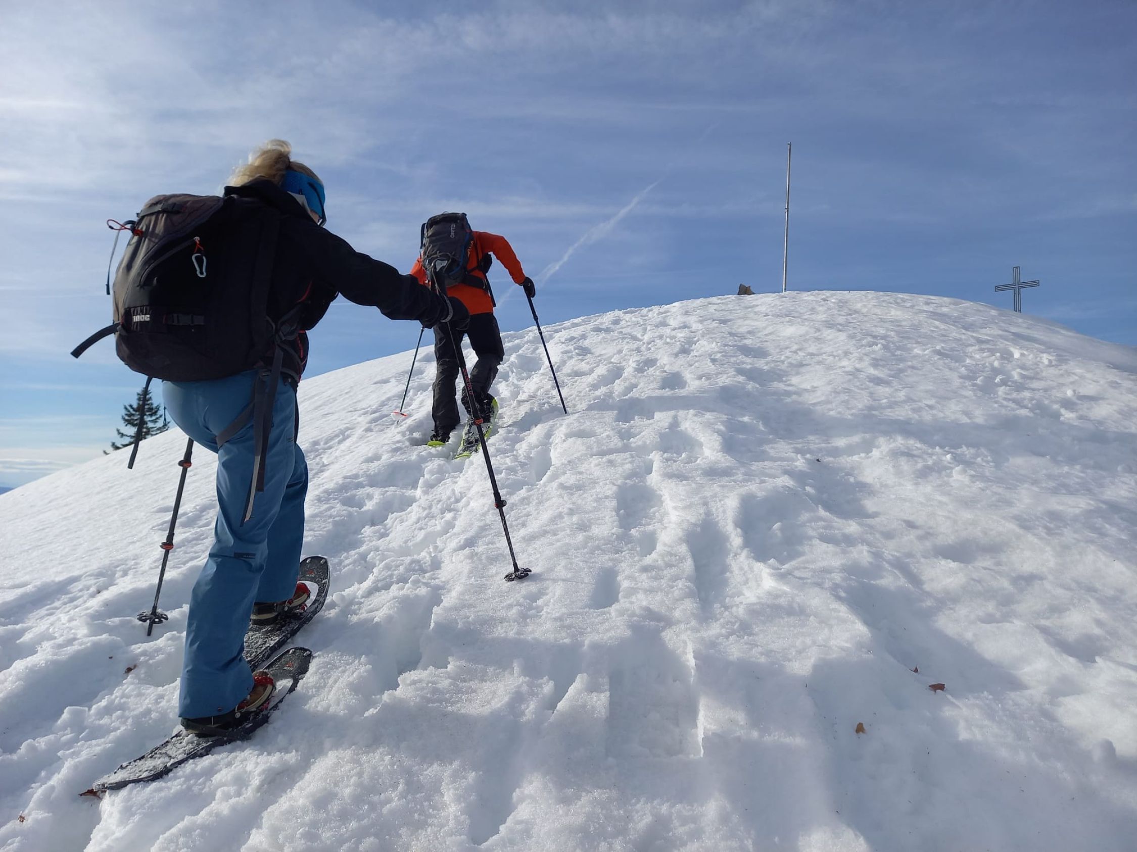 Genug Schnee, um mit Schneeschuhen zu gehen. Bei manchen, aperen, Stellen ist zu überlegen, die Schneeschuhe abzuziehen (wie z.B. beim steilen Aufstieg auf den Rotstein). An schattigen Stellen war der Schnee hart und an sonnenbeschienenen Stellen weich, aber gut zu gehen.