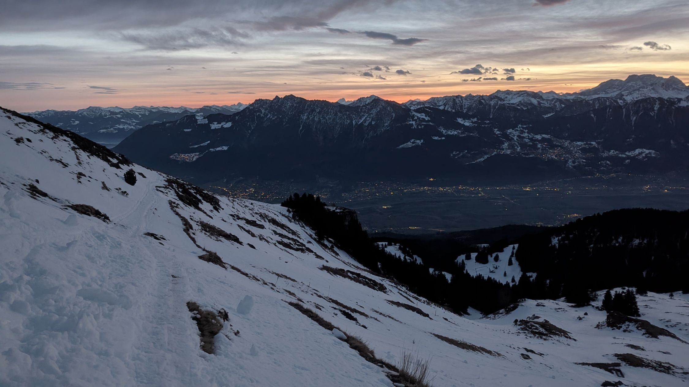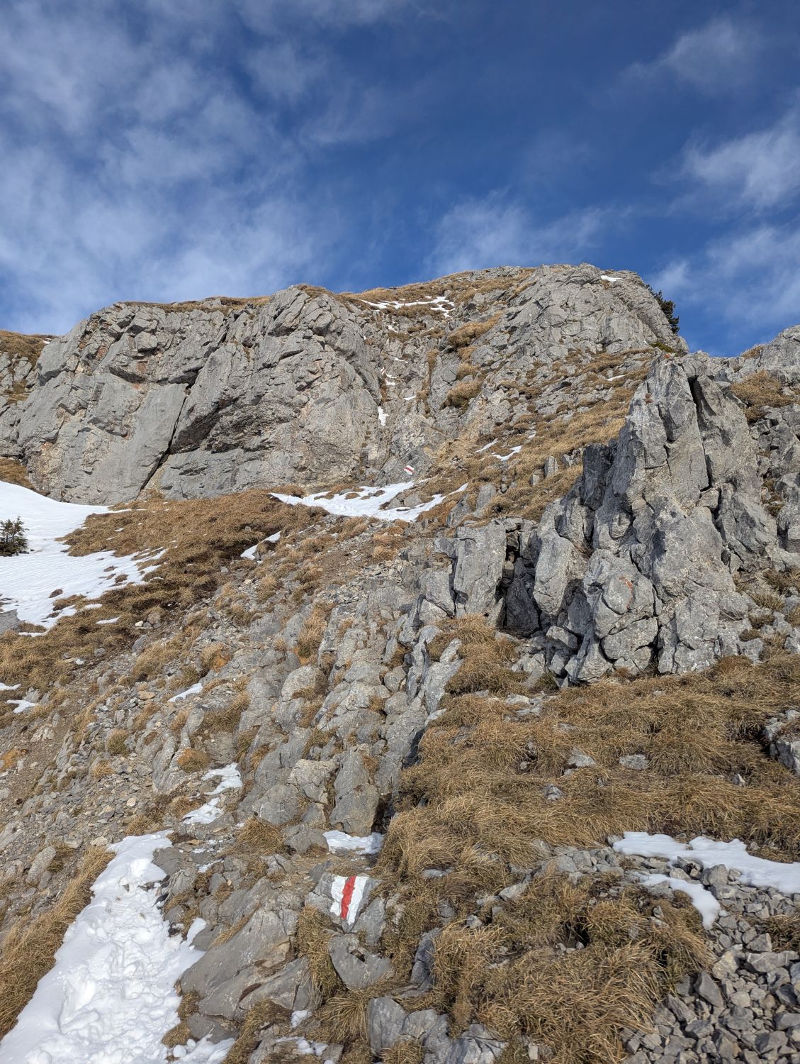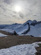 Mit Erwärmung und kalten Nächten wird es mehr Deckel geben, am Gipfelrücken dürfte es aber halten. Die Piste sollte auch nicht mehr allzulange durchhalten. Es sind heute einige Spuren dazugekommen.